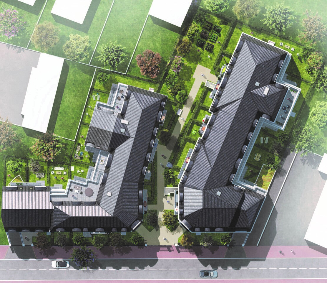 Cette résidence située dans un environnement boisé est composée de petits bâtiments à taille humaine qui s'ouvrent sur un jardin partagé en coeur d'îlot.