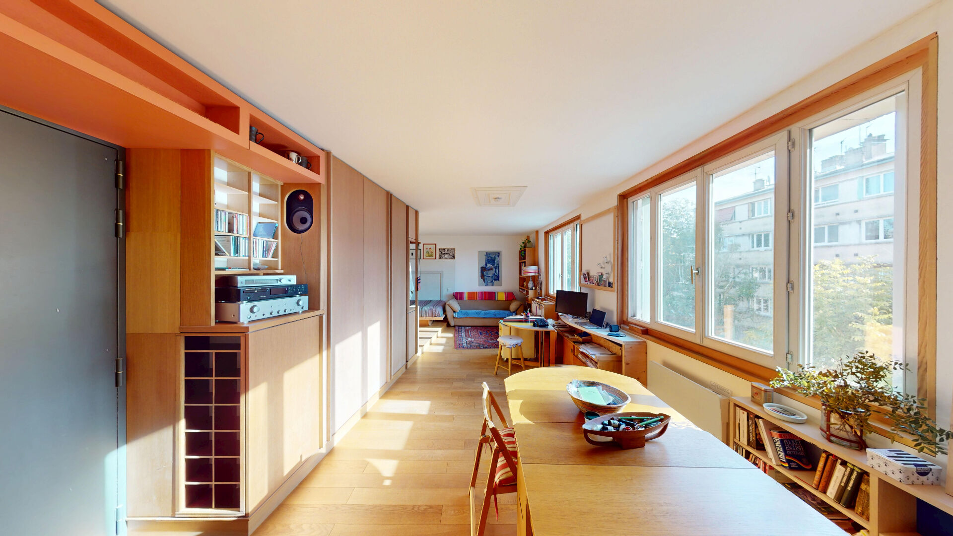 Charmant grand studio de 34 m² (ancien 2 pièces) repensé avec soin. Il bénéficie de nombreux rangements sur mesure, optimisant chaque espace. L'appartement dispose d'un coin nuit bien séparé, dans un intérieur lumineux et fonctionnel. Ce bien dispose également d'une cave.