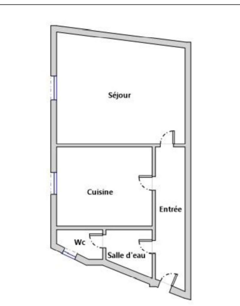 L'agencement se compose d'une entrée, d'une pièce principale, d'une cuisine séparée et d'une salle d'eau avec WC.