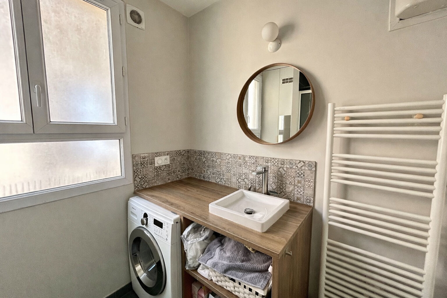 L'appartement se compose d'un séjour lumineux d'environ 20 m², d'une cuisine ouverte entièrement rénovée et équipée, de deux grandes chambres de 15 m² et 16 m², d'une salle d'eau avec douche et d'un W.C séparé avec lave-mains.