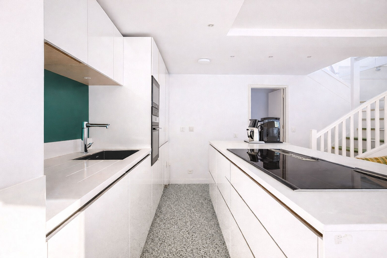 Une entrée indépendante ouverte sur une magnifique cuisine ouverte, entièrement aménagée et équipée, donnant sur une belle pièce de vie lumineuse.