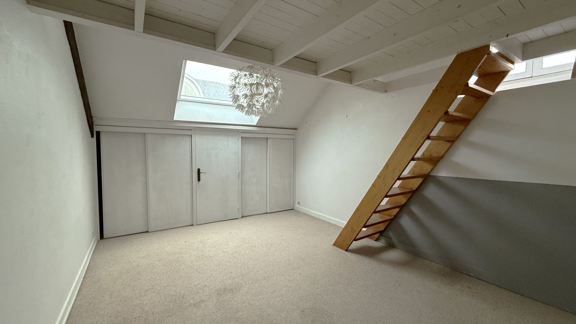 Il se compose d'une entrée ouvrant sur une belle pièce de vie lumineuse offrant une vue dégagée sur les toits, de deux chambres dont une avec mezzanine, d'une cuisine à repenser selon vos envies, ainsi que d'une salle de bains avec douche et baignoire et ses WC attenants.