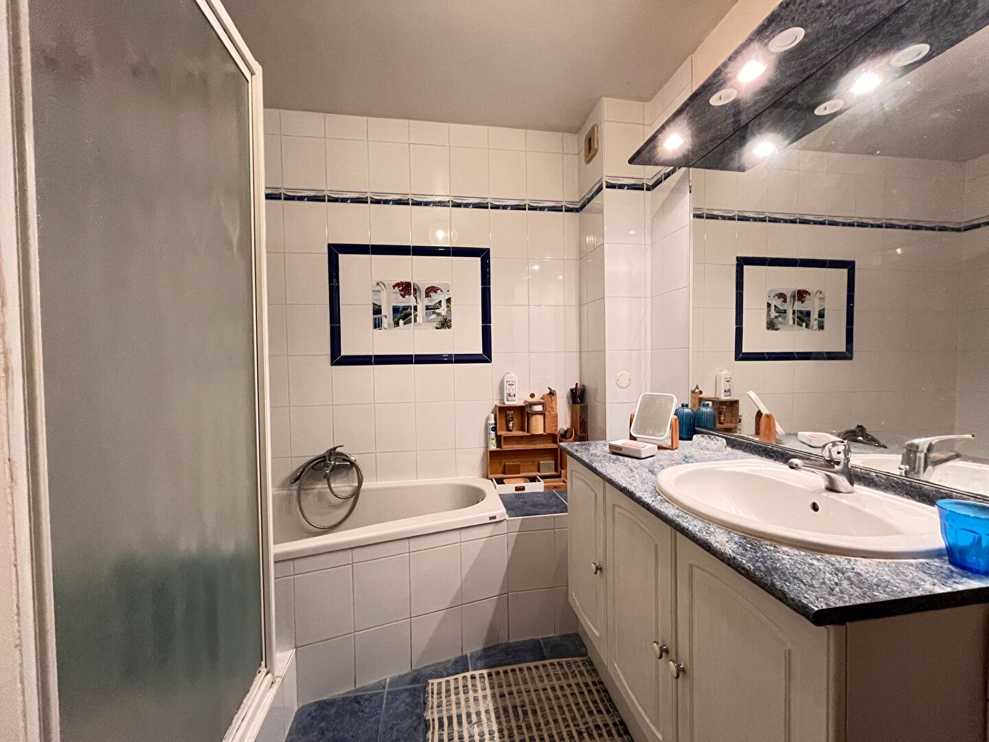 L'espace nuit se compose de deux chambres confortables ainsi que d'une salle de bains fonctionnelle, équipée à la fois d'une douche et d'une baignoire.