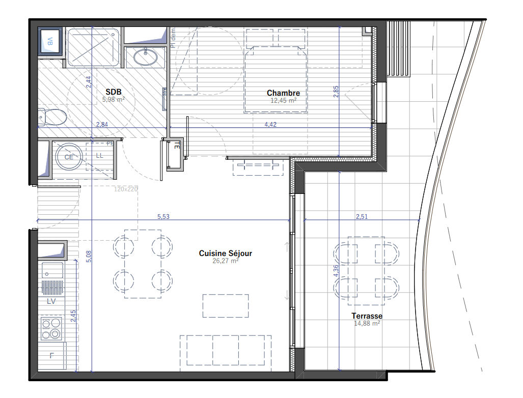 Du T2 au T5, les appartements offrent de beaux volumes lumineux, prolongés par de grandes terrasses. L'architecture aux lignes courbes et aux teintes bronze et or confère au projet une identité moderne et raffinée. Des prestations de qualité au rendez-vous et des personnalisations possibles selon vos besoins.