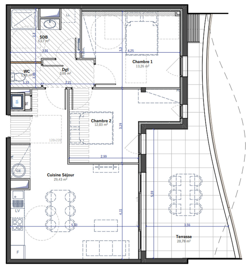 Du T2 au T5, les appartements offrent de beaux volumes lumineux, prolongés par de grandes terrasses. L'architecture aux lignes courbes et aux teintes bronze et or confère au projet une identité moderne et raffinée. Des prestations de qualité au rendez-vous et des personnalisations possibles selon vos besoins.