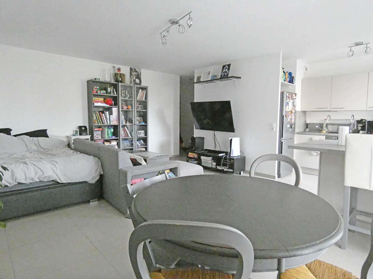 Il comprend un grand séjour de 26 m² avec cuisine ouverte aménagée et équipée, une chambre, une salle d'eau et un balcon.
