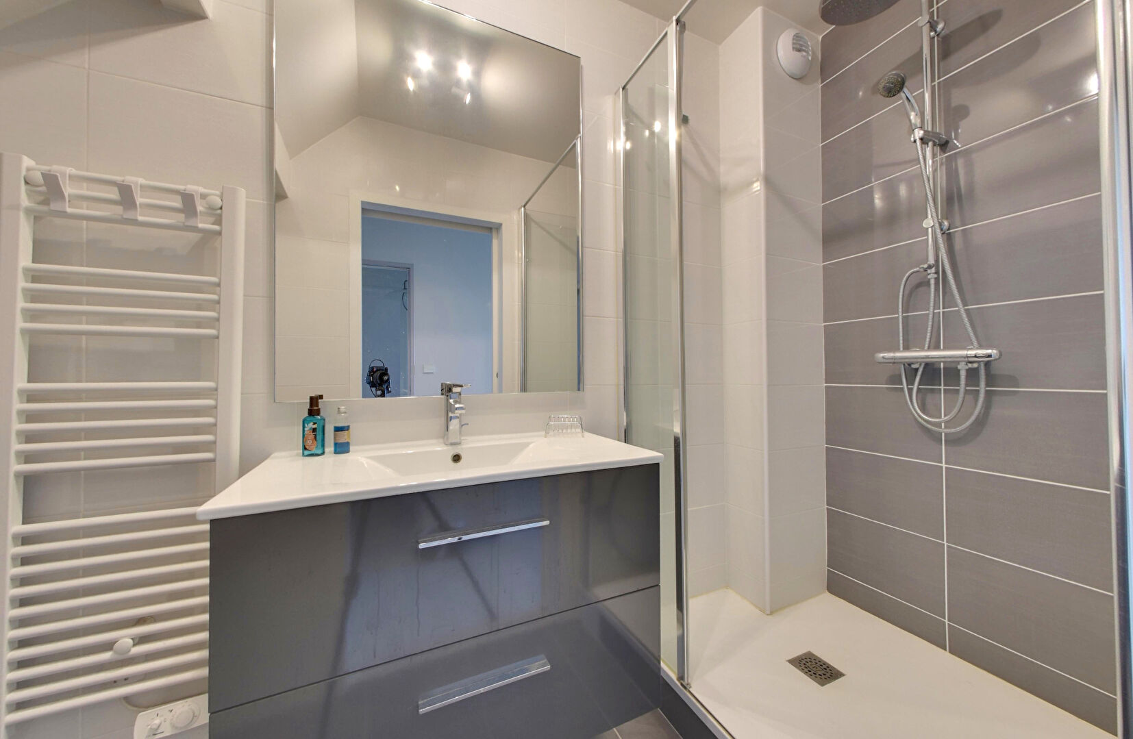 À l'étage : deux chambres séparées, chacune avec sa salle d'eau, pour un quotidien organisé et pratique.