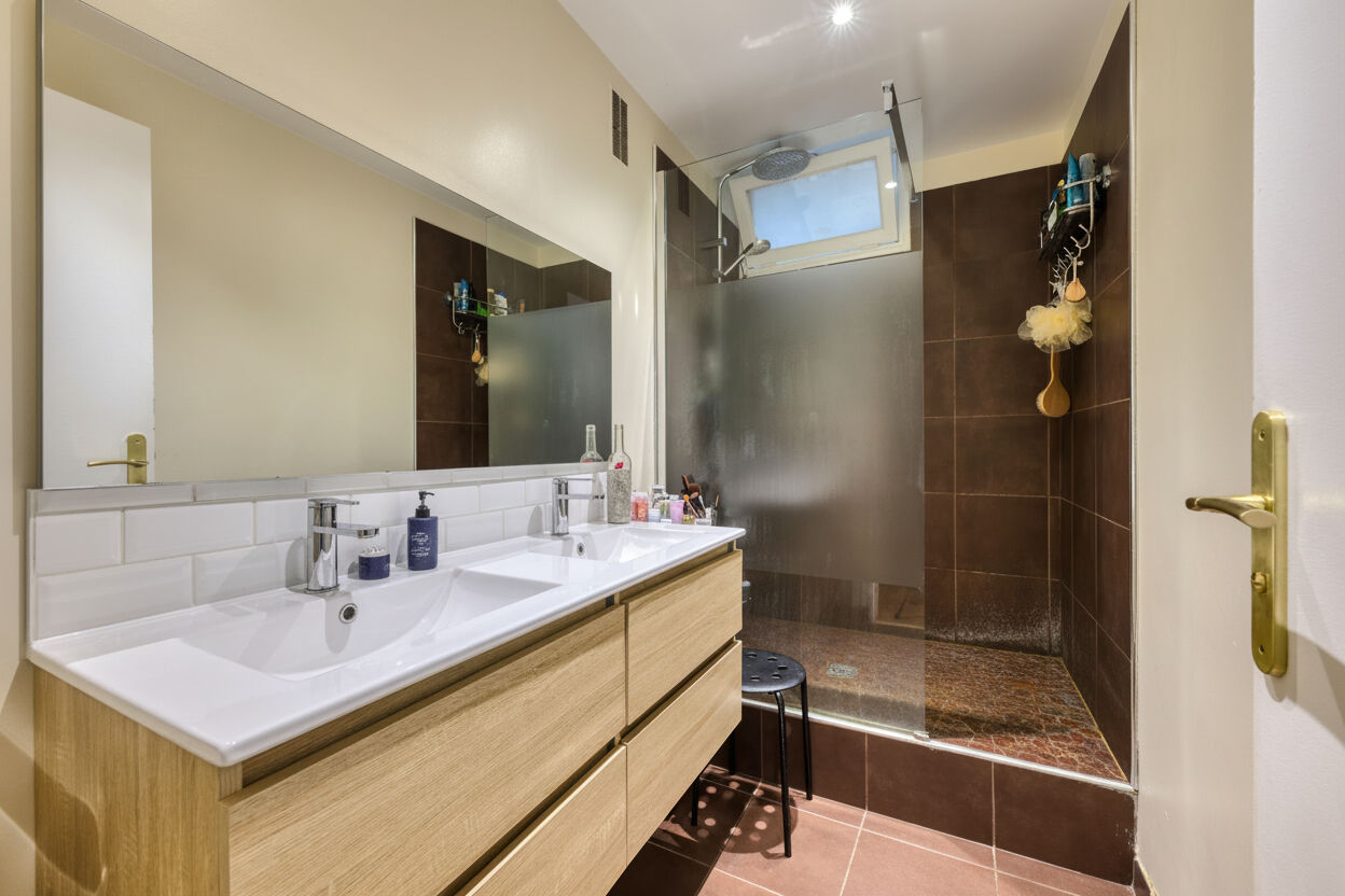 L'espace nuit se compose de deux chambres avec rangements, d'une salle d'eau avec douche à l'italienne et de nombreux placards.