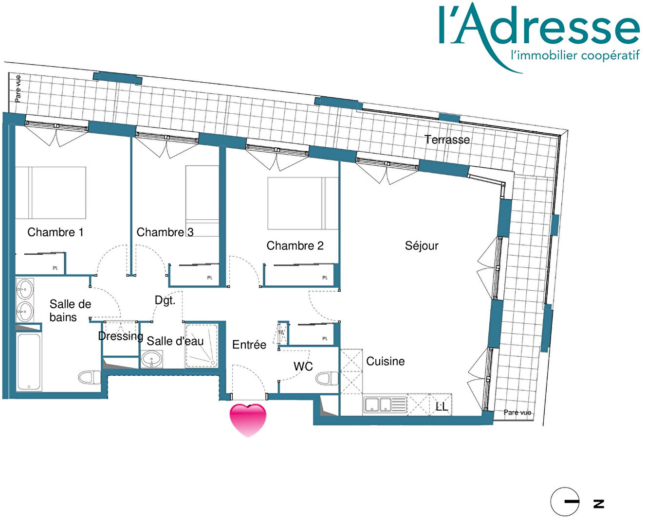 Votre agence l'Adresse vous invite à entrer dans votre nouveau logement sans plus attendre en cliquant sur le lien de visite virtuelle: https://www.hdmedia.fr/visite-virtuelle/hd/cbptbpLSyb-app-neuf-4-pieces.html