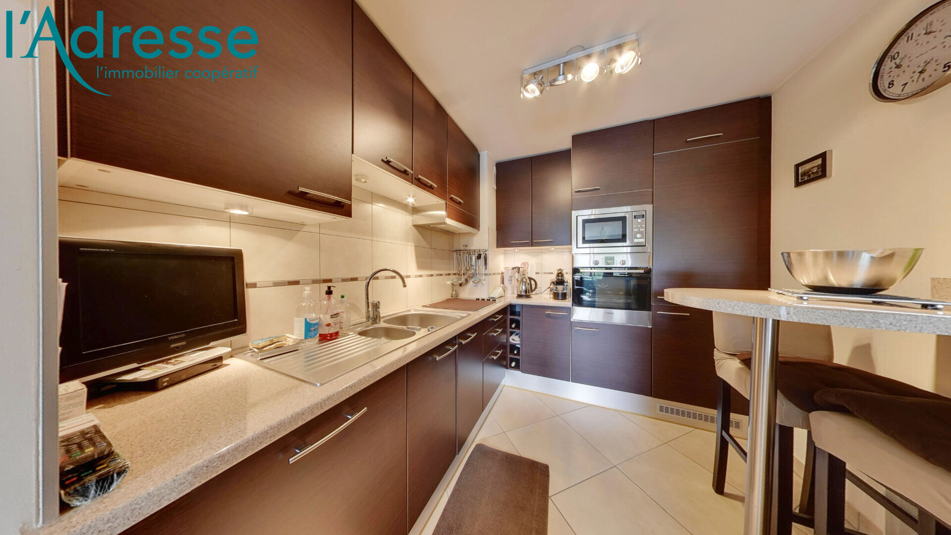 Dès l'entrée, vous serez séduit par un espace fonctionnel avec placard intégré. Vous découvrirez ensuite une grande cuisine contemporaine, entièrement équipée et aménagée, ouverte sur un séjour donnant accès à un agréable balcon, idéal pour profiter des beaux jours.