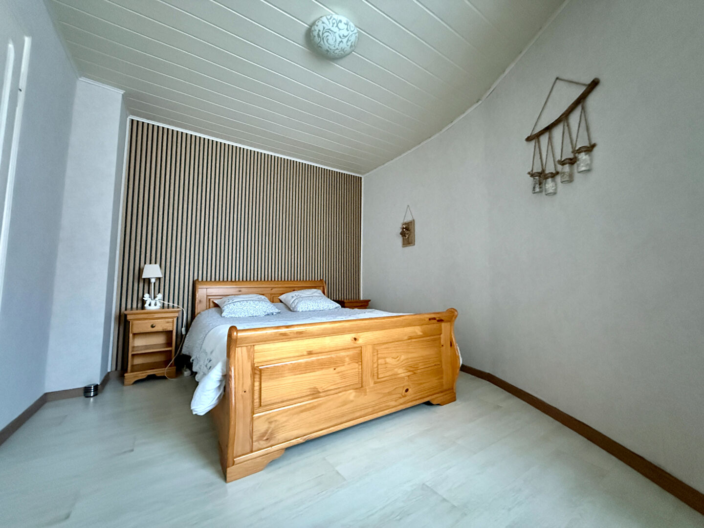 La partie nuit comprend deux chambres, une salle de bains avec WC, ainsi qu'un cellier.