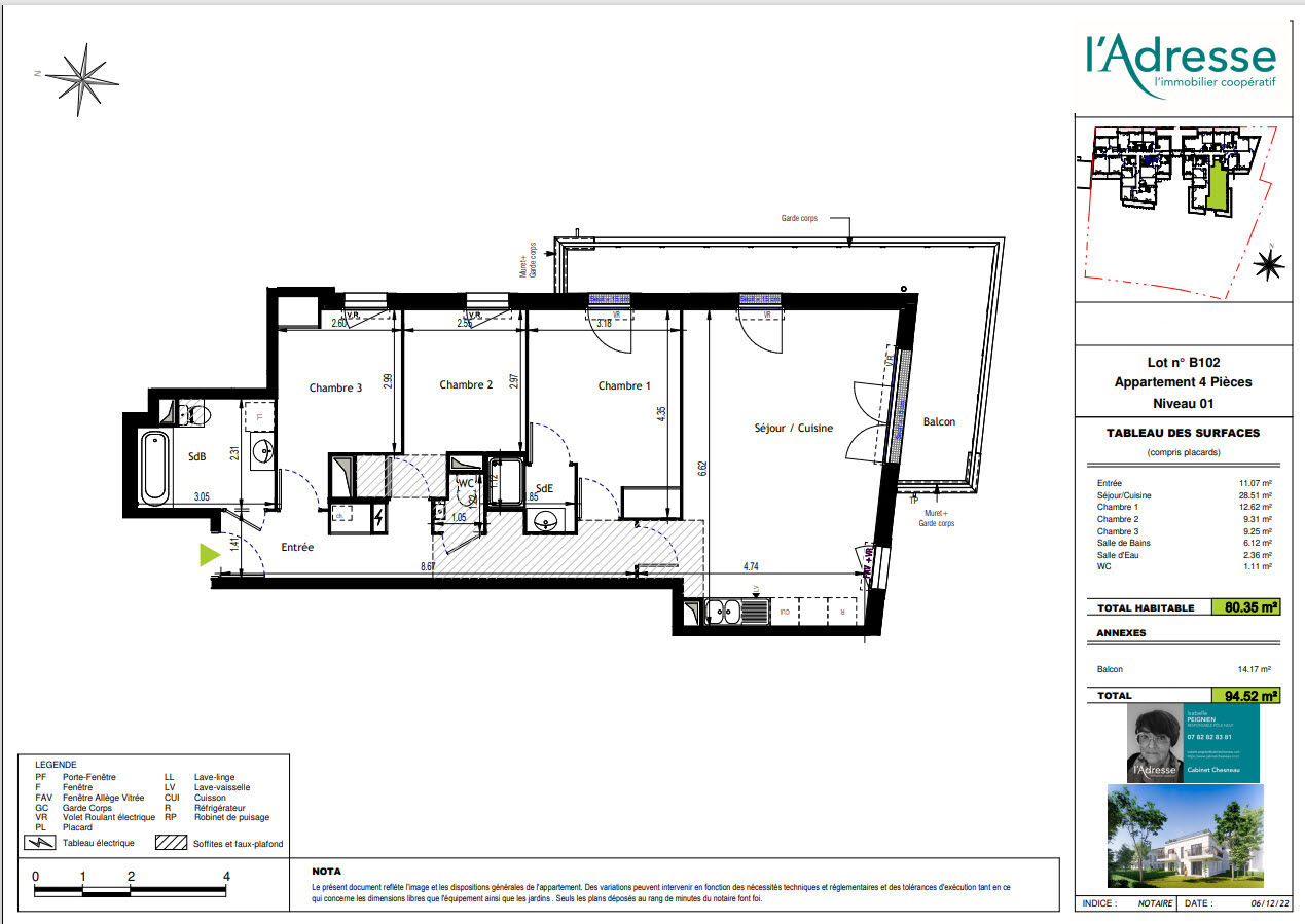 285 000 €Appartement4 pièces , 3 chambres