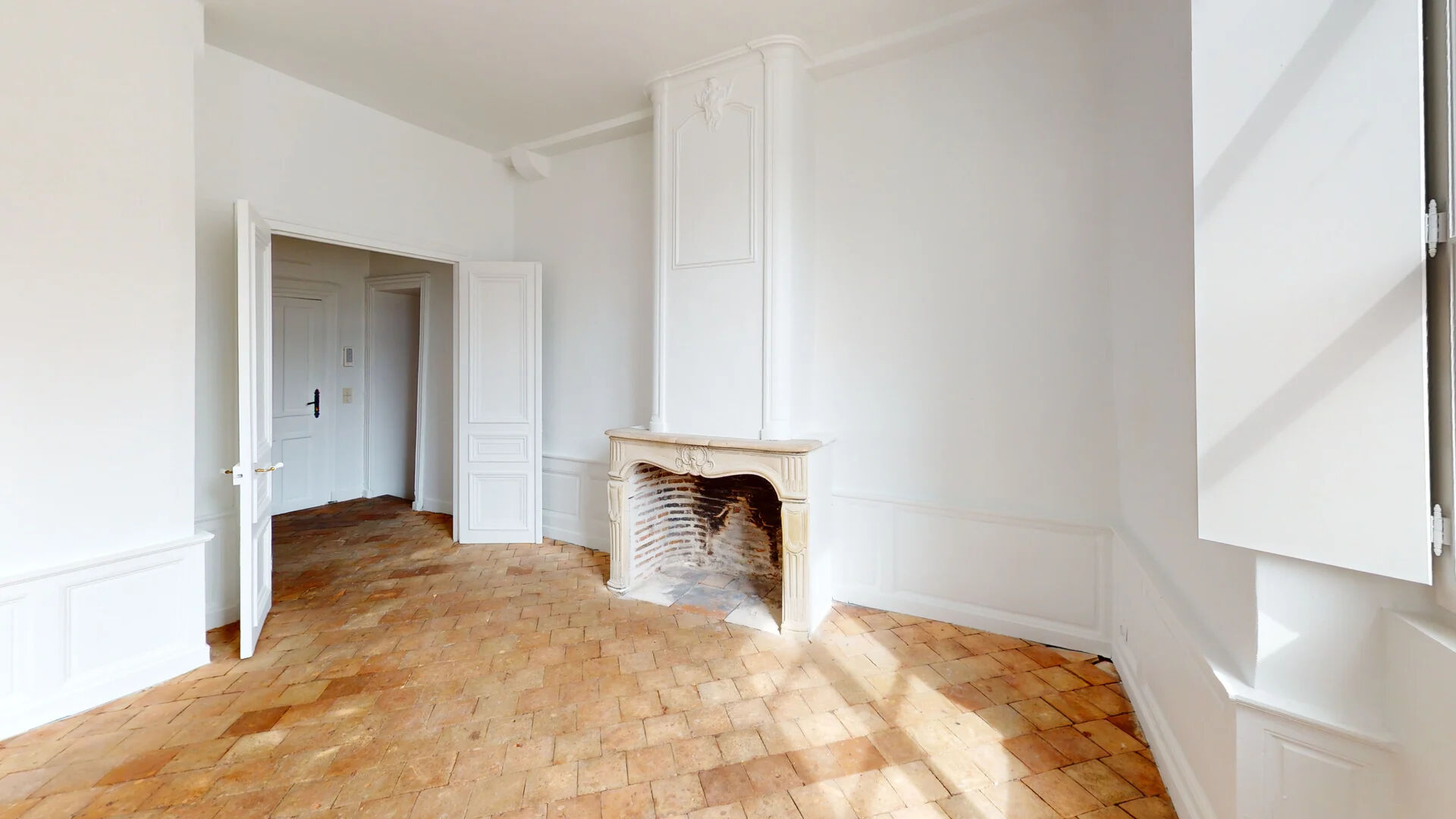 Appartement comprenant une entrée desservant une cuisine indépendante 7m², un séjour double de 33m² bénéficiant de 3 fenêtres exposition Sud sans vis-à-vis, 2 belles cheminées d'époque, une pièce idéale pour chambre d'enfant ou télétravail avec sa vue sur la cour d'un hotel particulier, et coté nuit une magnifique chambre de 21m² avec sa cheminée, une salle de bains et des w-c séparés.