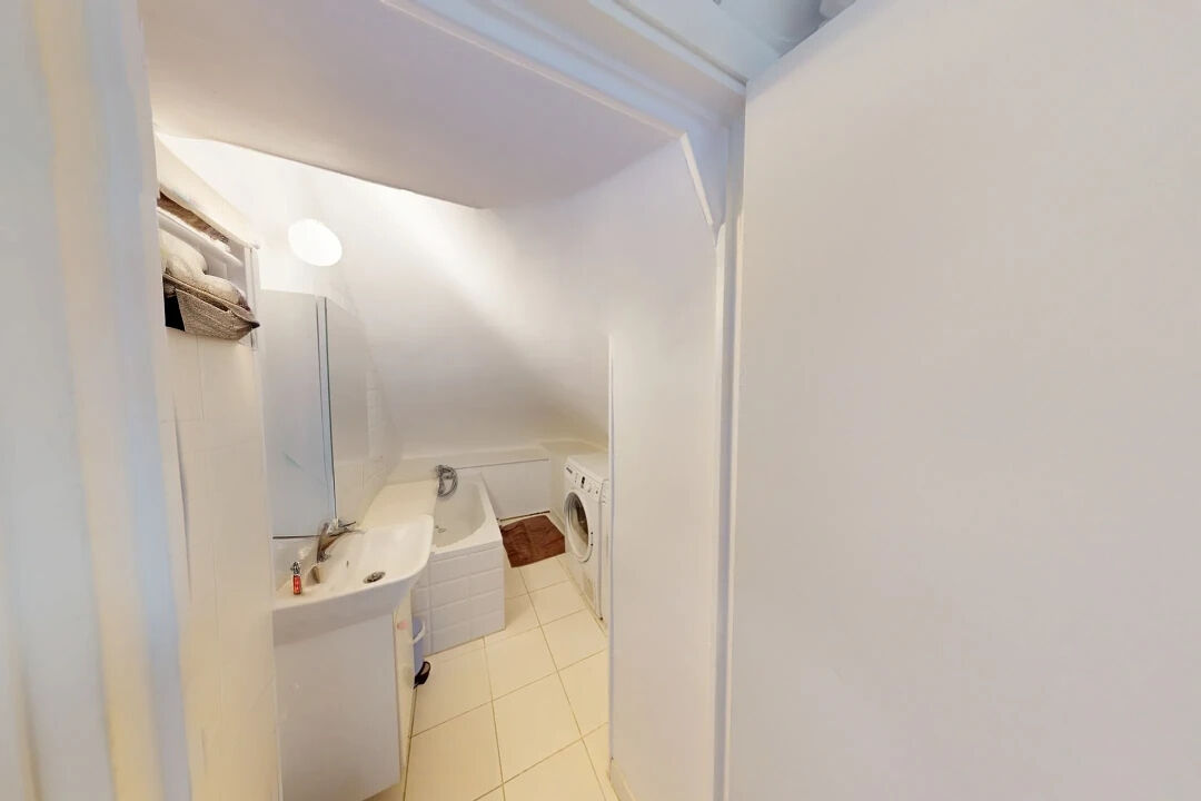 Au 2ème niveau un bureau/espace de jeu pour enfants et une chambre mansardée avec sa salle de bains/buanderie. HSP de 2m72.