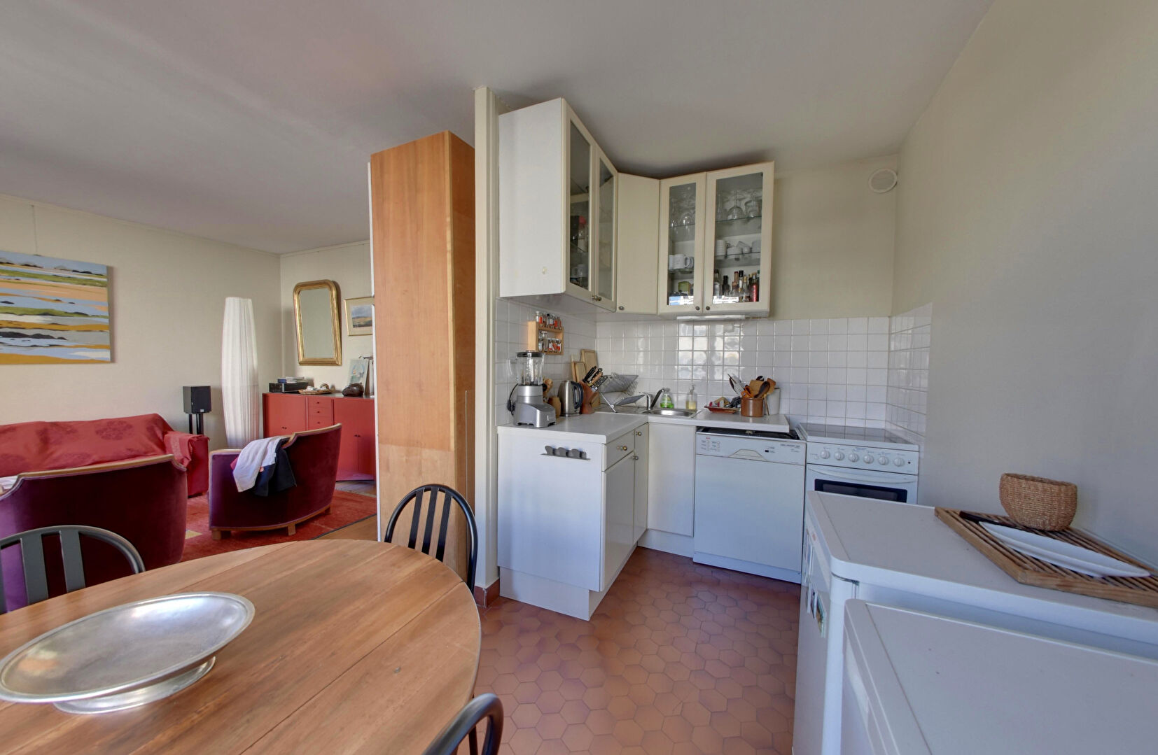 La pièce de vie, agréable et bien agencée, propose un espace semi-ouvert avec la cuisine, idéal pour un quotidien convivial. L'ensemble est complété par une chambre confortable et un espace bureau, parfait pour le télétravail.