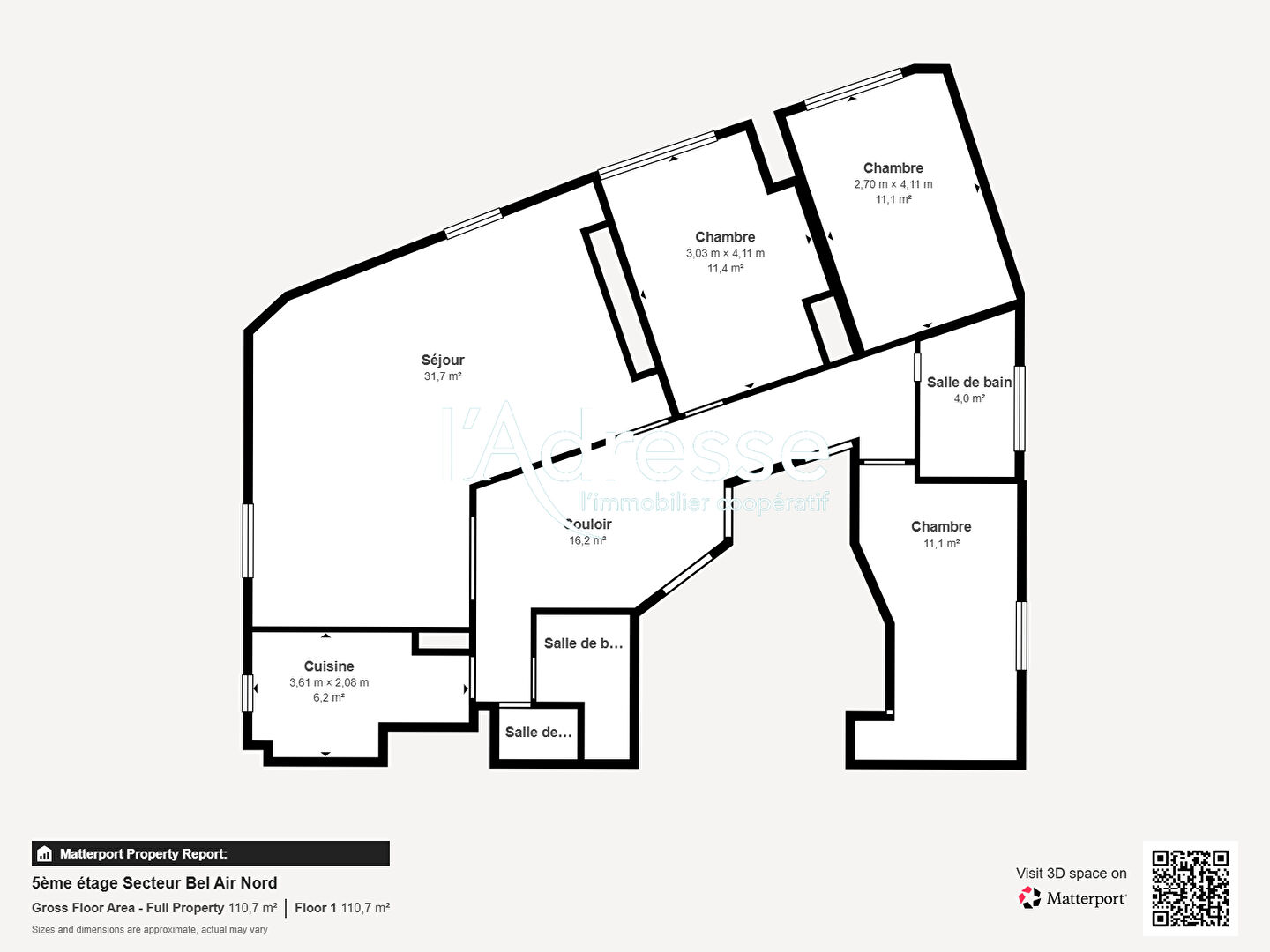 - de 3 chambres de 11, 12.5 et 13m²