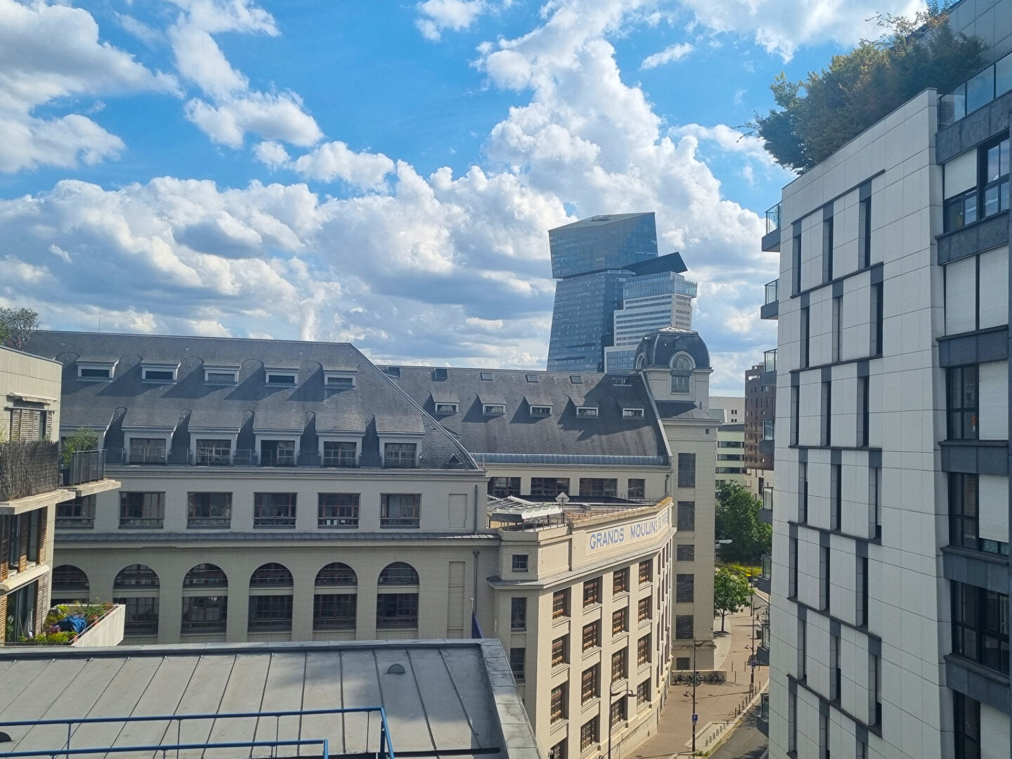 Lumineux 3 pièces en dernier étage, magnifique vue coup de coeur sur le quartier de la Bibliothèque François Mitterrand et les tours Duo. Vous découvrirez une entrée qui distribue la salle d'eau, WC séparé, chambre parentale avec rangement, cuisine aménagée et équipée semi- ouverte, seconde chambre, puis le superbe salon séjour baigné par le soleil avec un petit balcon pour prendre votre café au soleil. Belle hauteur sous plafond, plus de 3m, sans perte de place, double exposition sud est. Emplacement central dans le quartier de la Bibliothèque, RER C et Métro ligne 14 à 3 min à pies, tout comme les quais de Seine pour vos ballades et les moments de détente. Ce bel appartement est vendu avec cave au sous sol.
