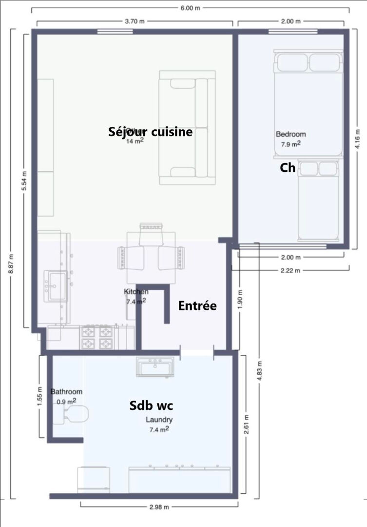 - Cuisine Ouverte Aménagée Equipée