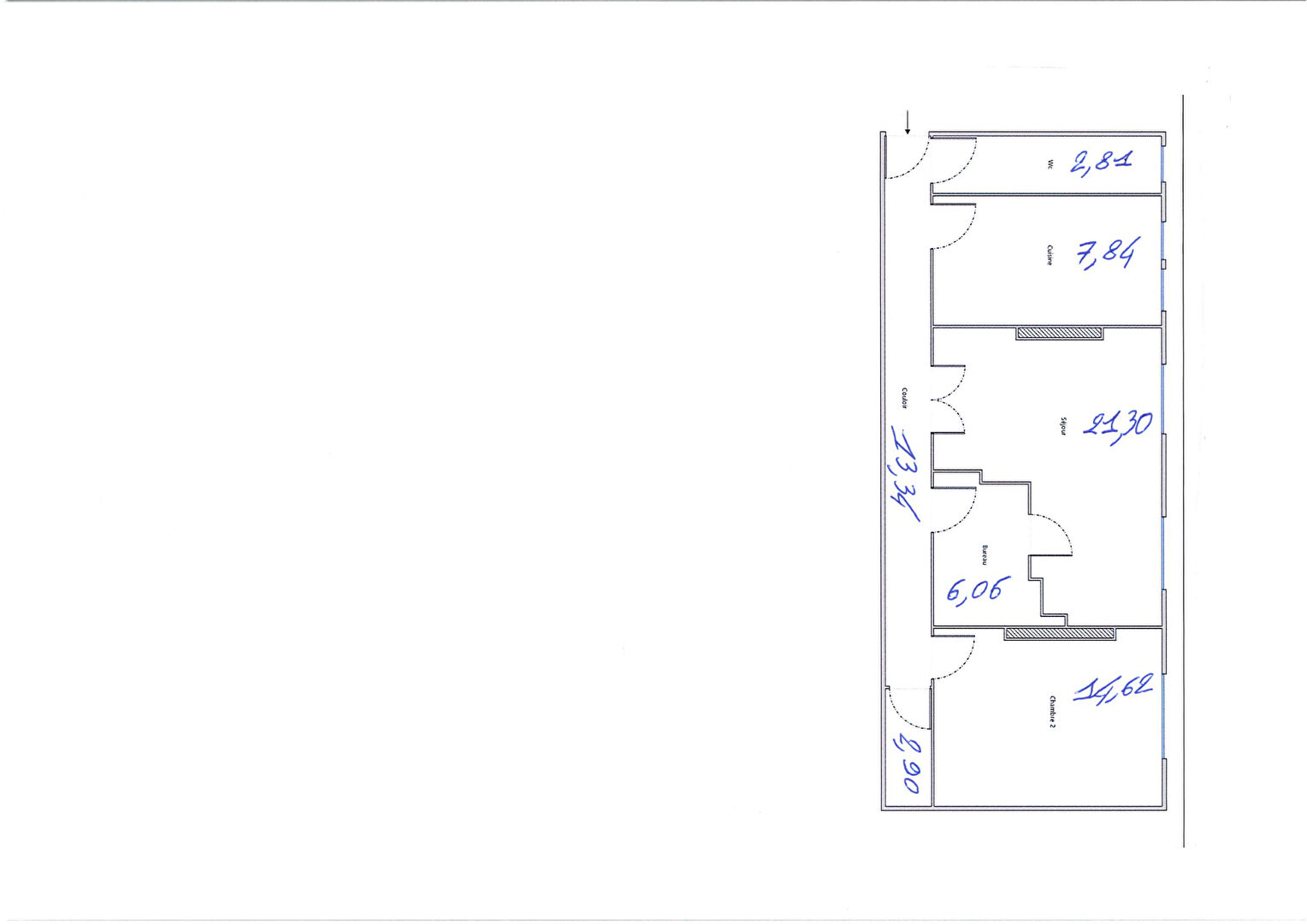 L'espace se compose d'une entrée avec dégagement, d'un séjour confortable, d'une cuisine indépendante, d'une chambre principale spacieuse de 14 m², d'une seconde chambre dans le prolongement du salon, ainsi que d'une salle de bains et de toilettes séparées.