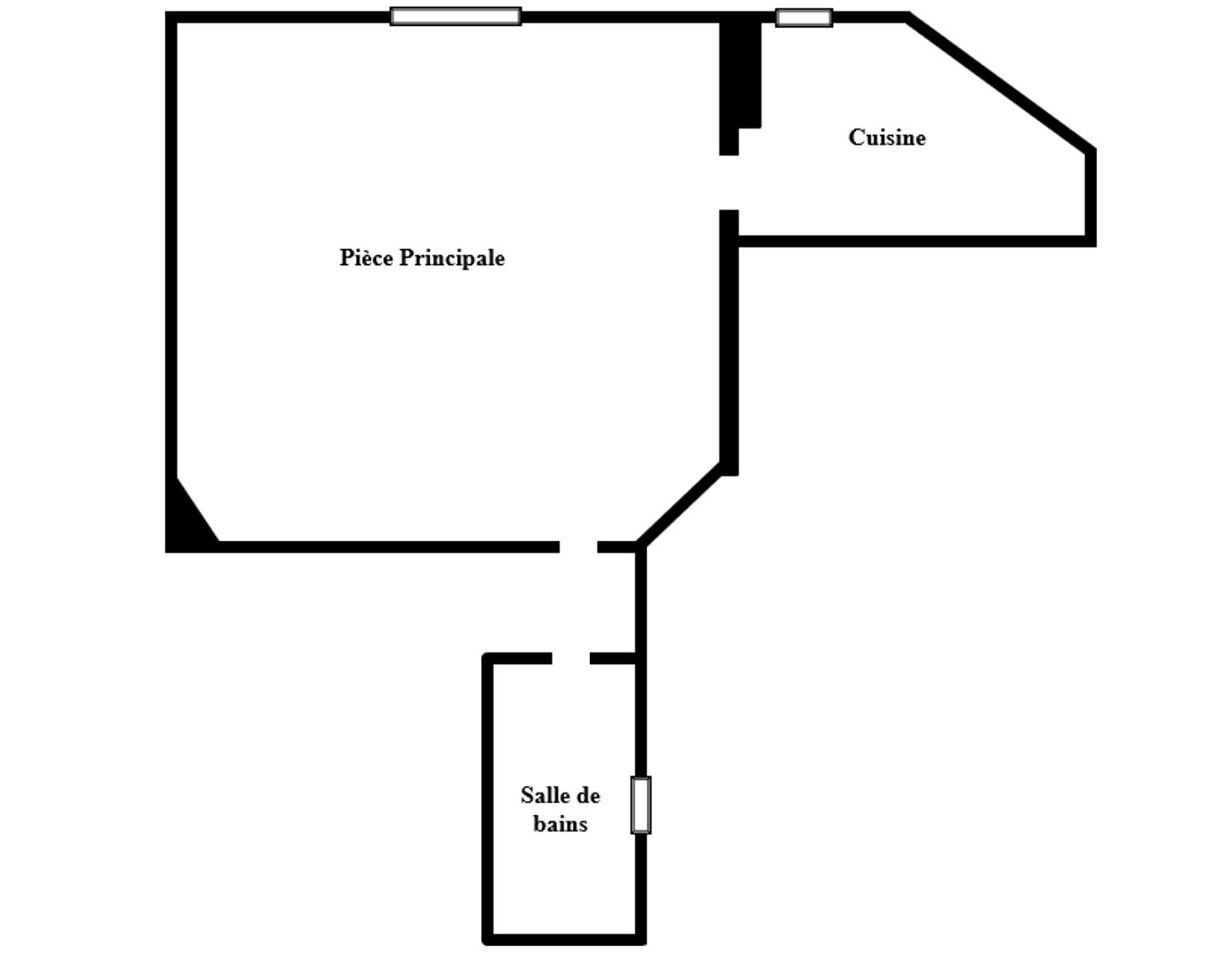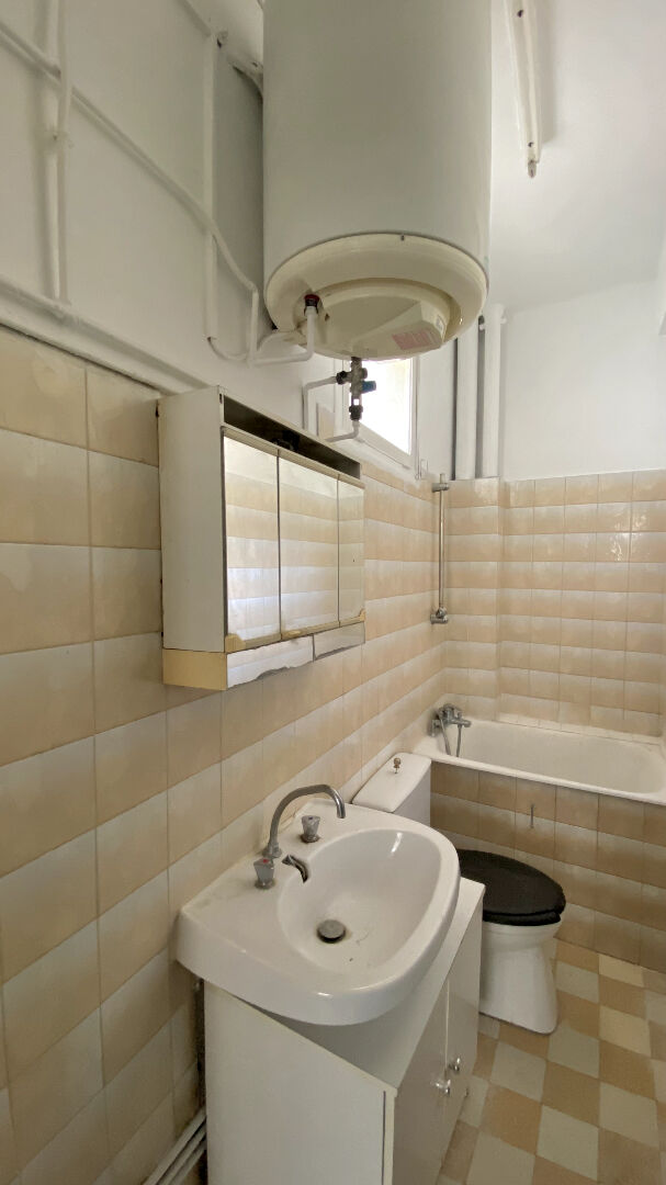 La salle de bains privée avec w.c se trouve juste en face du studio, il faut traverser le palier. Il n'est pas possible de regrouper les deux volumes car un appartement est au bout du couloir, mais possible de faire des travaux dans le volume principal si besoin.
