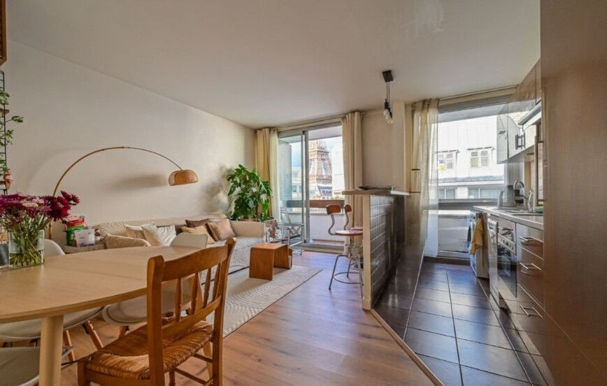 Vue Tour Eiffel! Dans le 15è nord, en étage élevé avec ascenseur, cet appartement de 50,64 m² offre une atmosphère à la fois élégante et contemporaine. Il se compose d'un vaste séjour baigné de lumière ouvrant sur un grand balcon avec une vue dégagée sur la Tour Eiffel, d'une cuisine américaine entièrement aménagée et équipée, d'une chambre avec balcon également, d'un dressing, et d'une salle d'eau avec toilettes. L'ensemble bénéficie d'un plan parfaitement optimisé. Les 2 balcons orientés plein ciel prolongent agréablement les espaces de vie et offrent un panorama unique sur le plus beau momument de Paris. L'appartement est vendu loué, constituant ainsi une opportunité rare pour un investissement de qualité dans un quartier recherché du XVe arrondissement, à proximité immédiate des commerces, transports et écoles réputées. Ravalement voté, à la charge du propriétaire actuel. M° Motte Picquet/ Dupleix.
