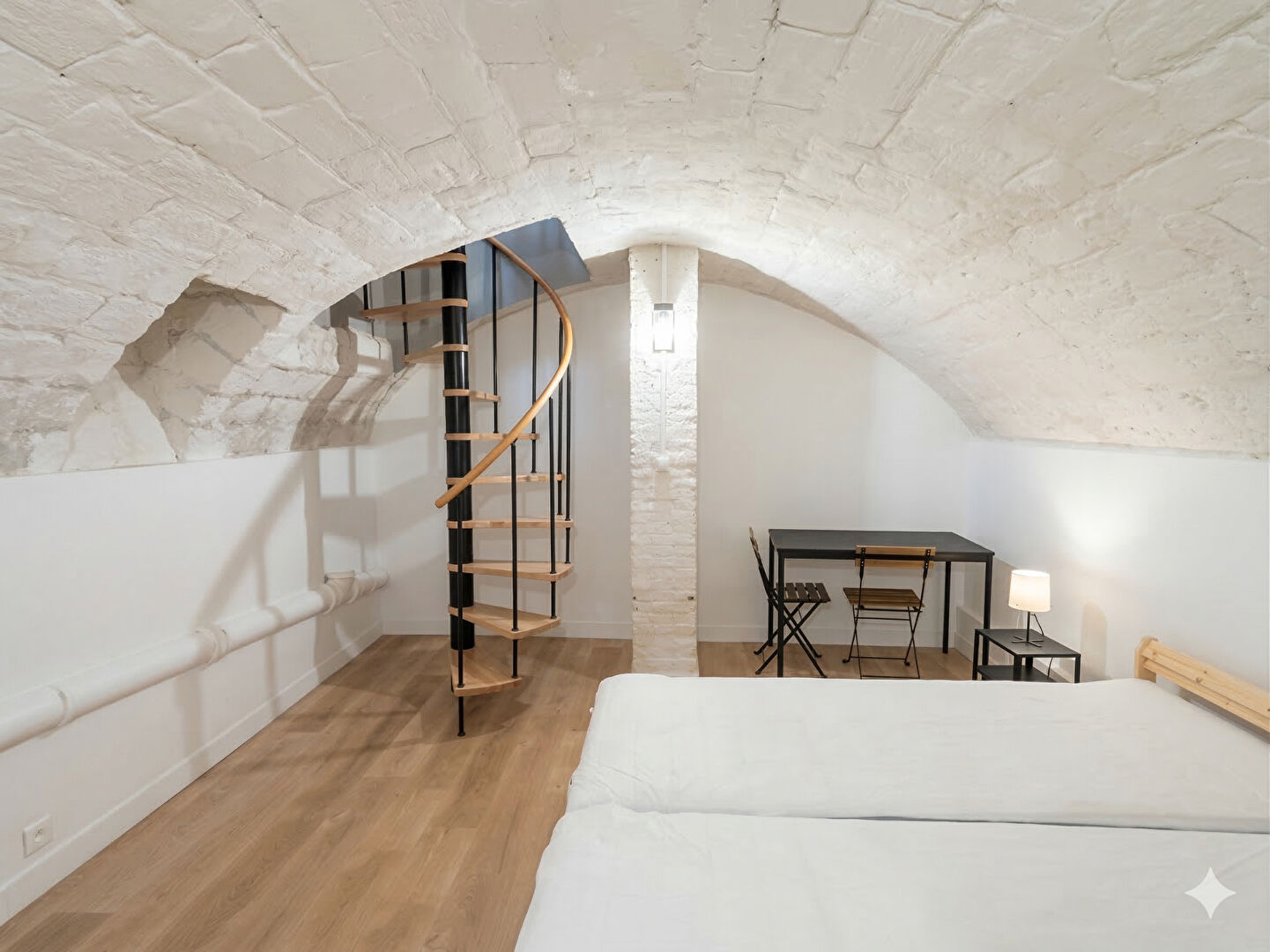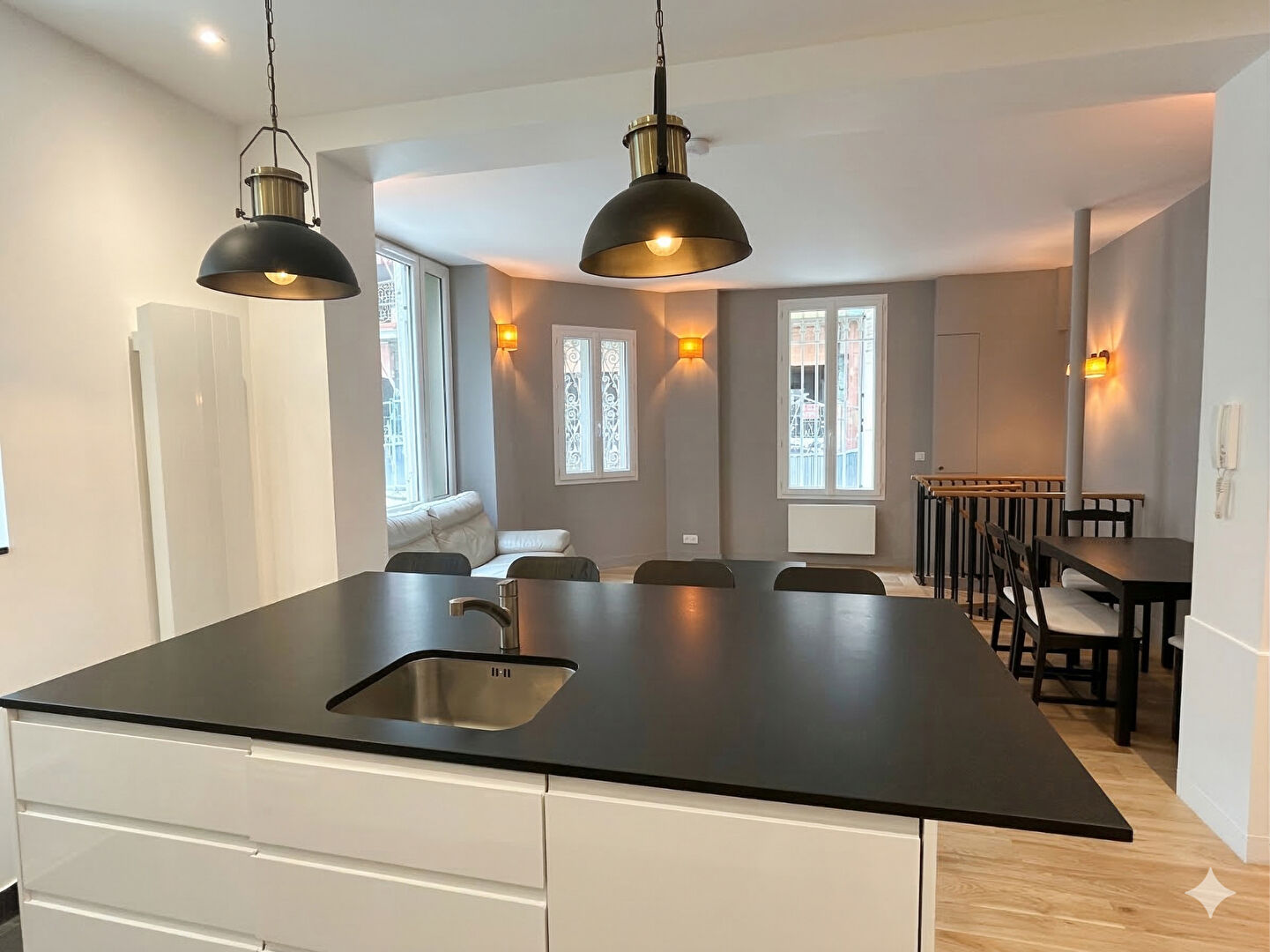 Cet appartement atypique entièrement refait à neuf d'une superficie loi Carrez de 67 M² vous offre un espace séjour avec cuisine ilot central d'une superficie de 33 M², une chambre avec placards, une salle d'eau spacieuse équipée de machine a laver le linge et sèche linge avec WC. En souplex une seconde chambre avec coin bureau.