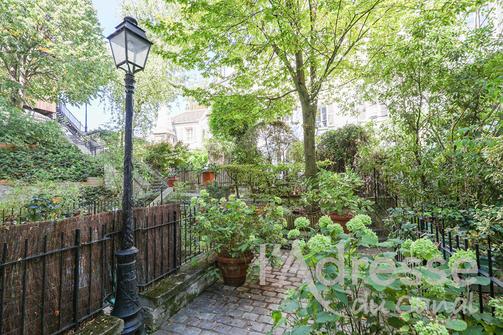 La résidence est organisée autour d'un jardin abritant le Moulin Blute-fin, monument classé, offrant un cadre intime et exceptionnel en plein Paris.