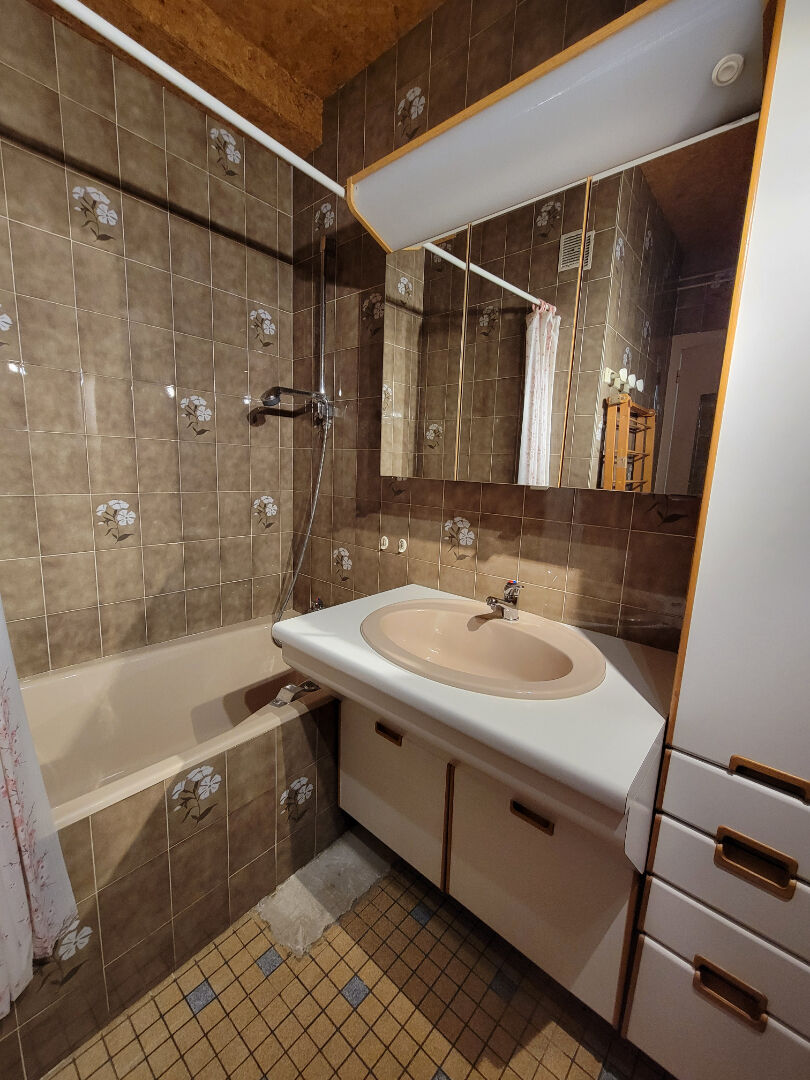 Il se compose d'un séjour donnant sur un grand balcon, d'une cuisine aménagée donnant sur un 2ème balcon, de 3 belles chambres, salle de bains et WC. Environnement de verdure et cadre de vie très agréable. Une cave et un garage fermé complètent le bien. Une visite s'impose!