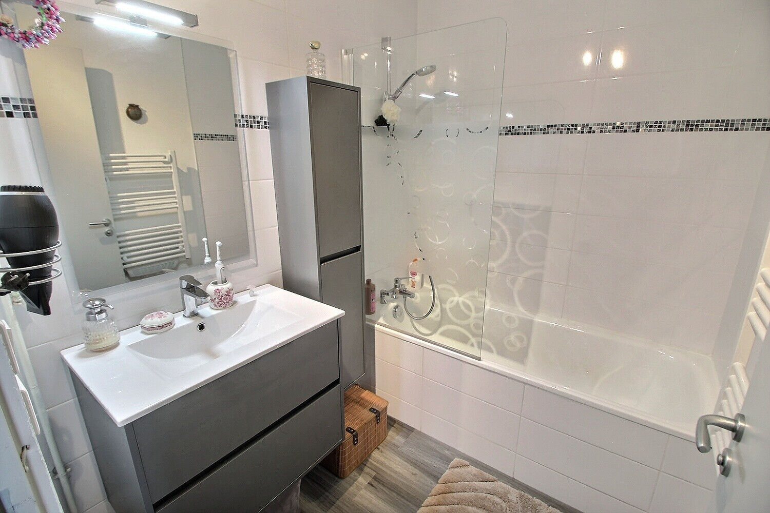 L'appartement dispose également de deux chambres confortables, d'une salle de bains et de rangements optimisés avec sa cave et Climatisé.