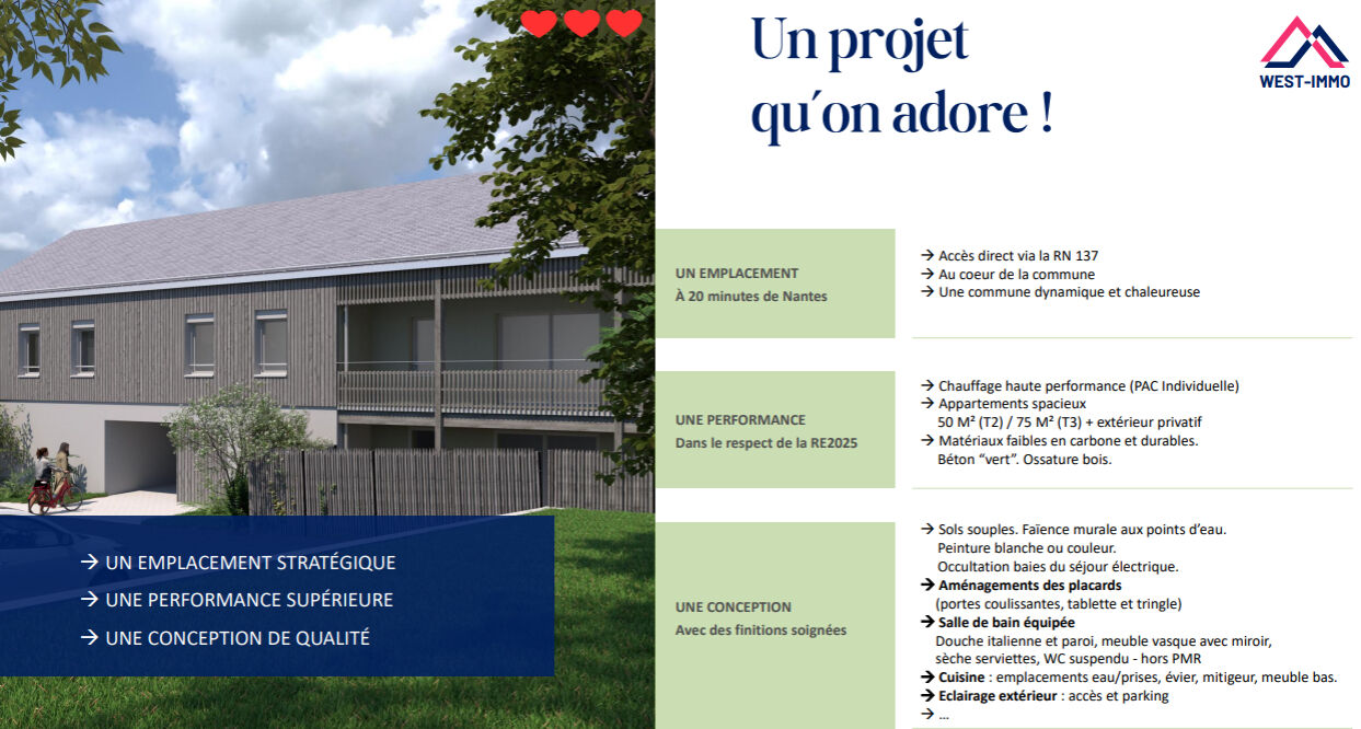 Ici, tout est pensé pour votre confort : une résidence élégante, parfaitement intégrée au centre-bourg, des matériaux durables et des performances énergétiques conformes RE 2020 et adaptée aux nouveaux seuils RE2025.