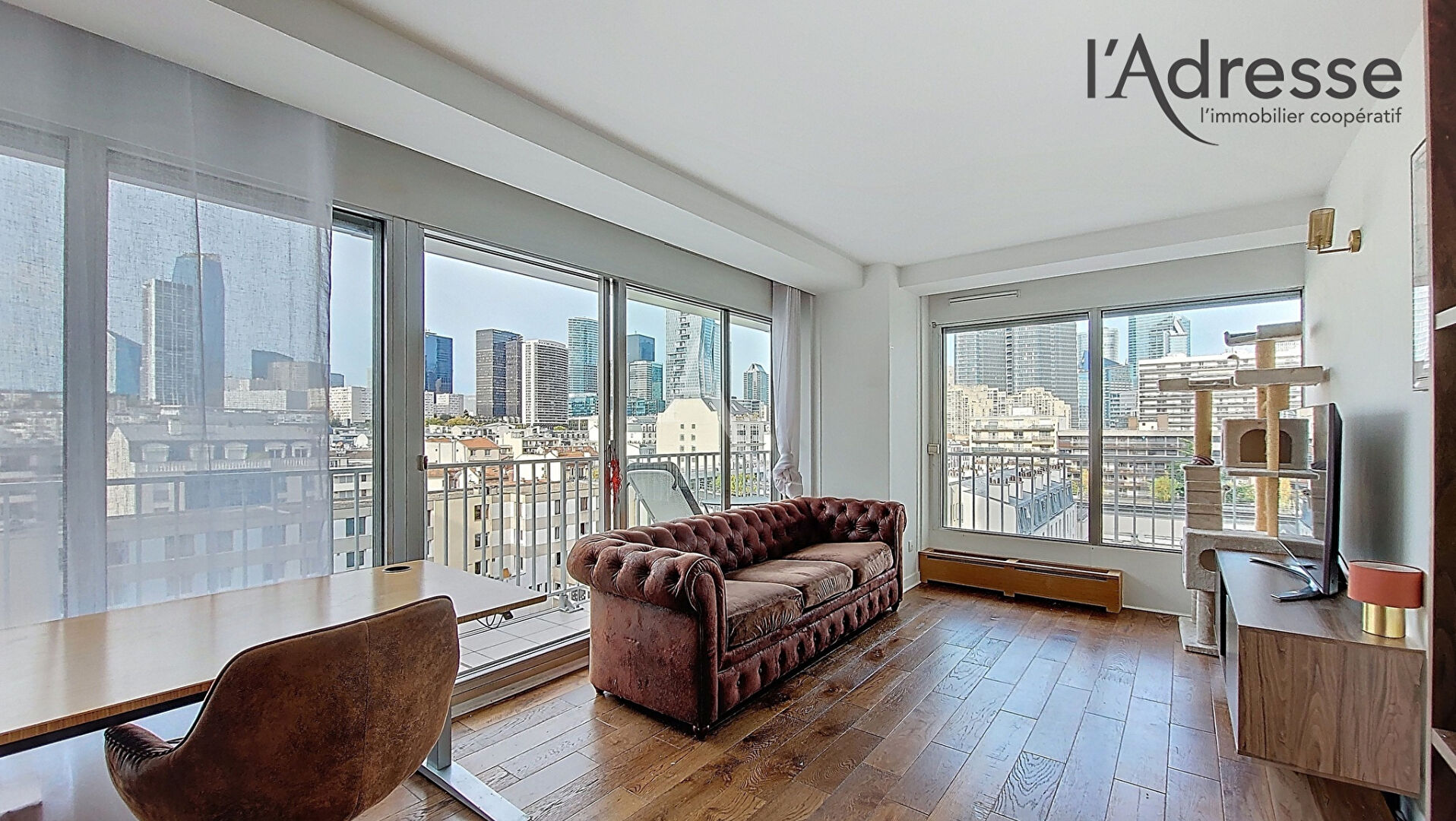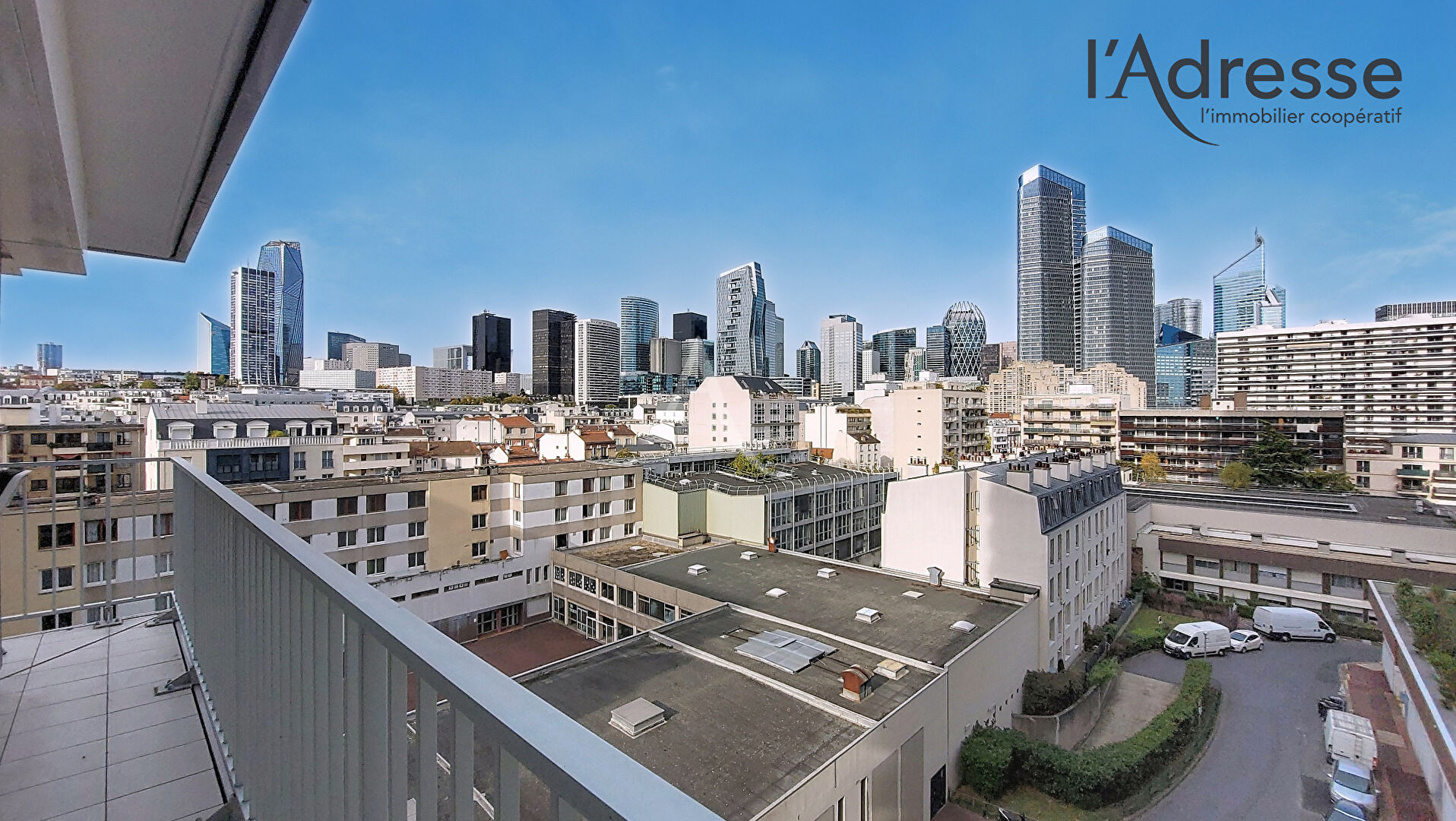 Il propose une entrée, un espace salon/salle à manger avec une cuisine ouverte équipée et aménagée de plus de 30m² donnant sur un balcon de près de 13m² avec vue dégagée sur la Défense, une salle de bains avec toilette , une chambre.