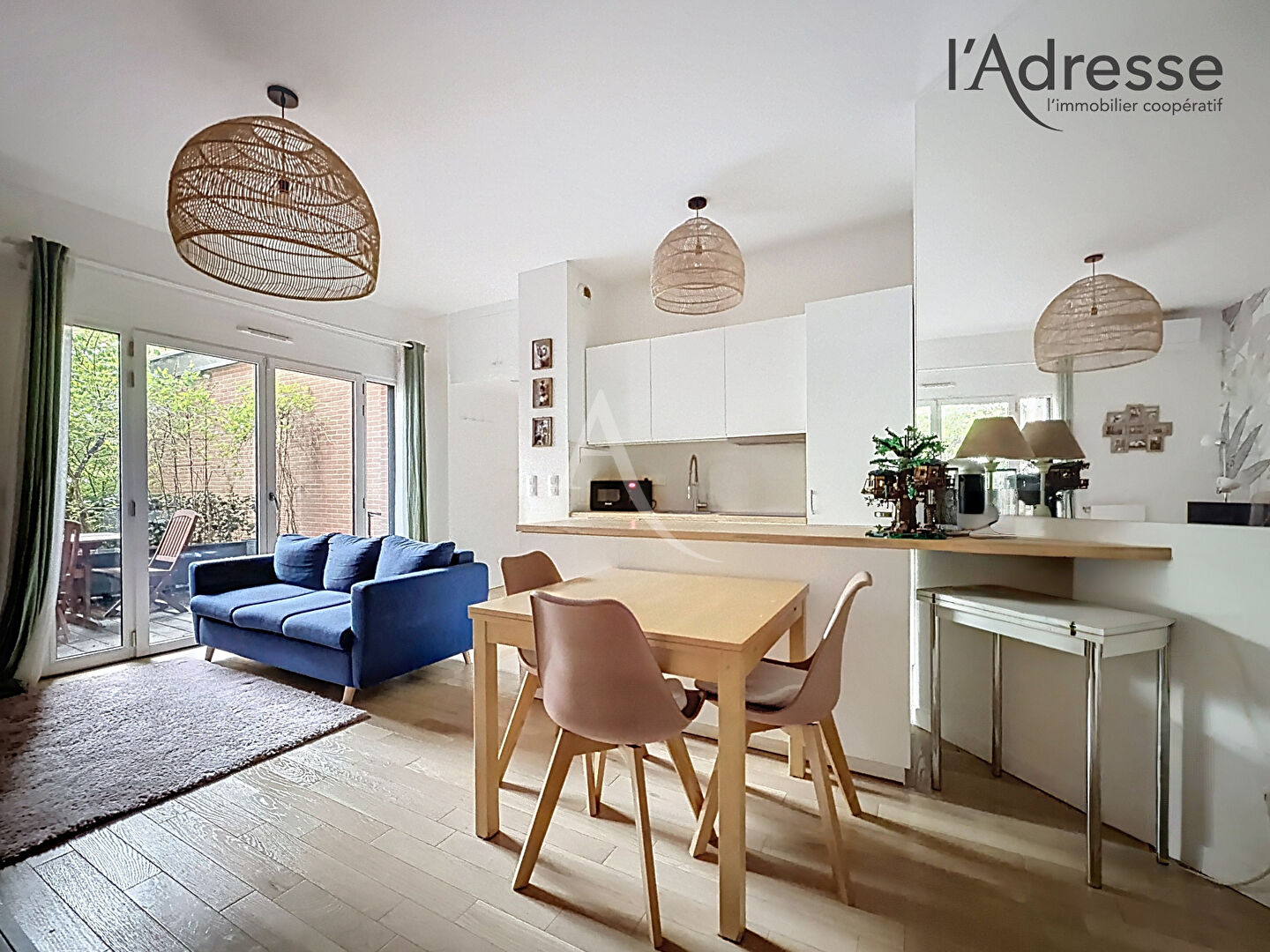 Agencé de la manière suivante : une entrée, une cuisine ouverte (aménagée et équipée) ouvert sur le séjour avec une terrasse et un jardin attenant de 21m². Un esspace bureau/chambre 2 en mezzannine, un dégagement nuit, une chambre avec dressing, un toilette séparé avec placard et un lave-mains, une salle de bains avec emplacement placard et machine à laver.