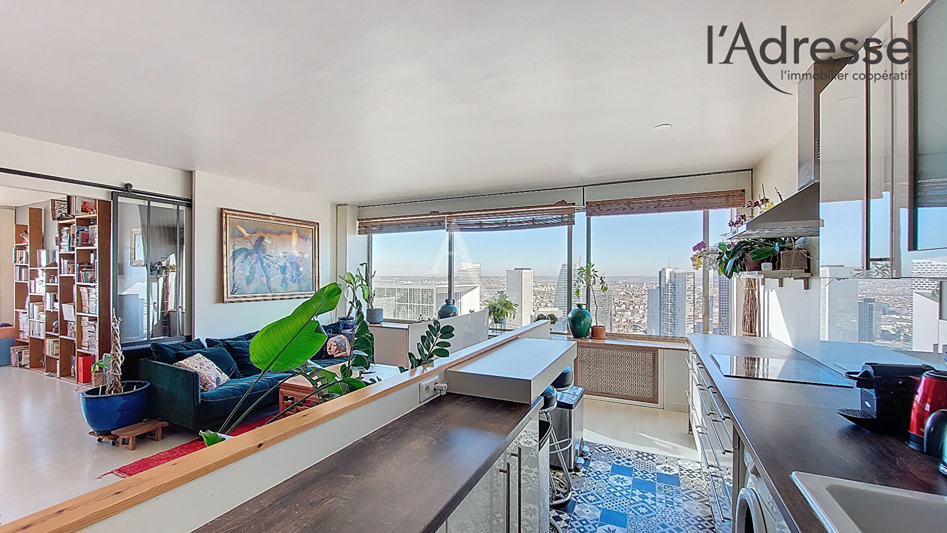 Au 44ème et avant-dernier étage ce bel appartement de 94.34m² en loi Carrez, avec une double vue Arche de la défense / Mont Valérien à couper le souffle et sans aucun vis-à-vis, est baigné de lumière et exposé Est-Ouest.