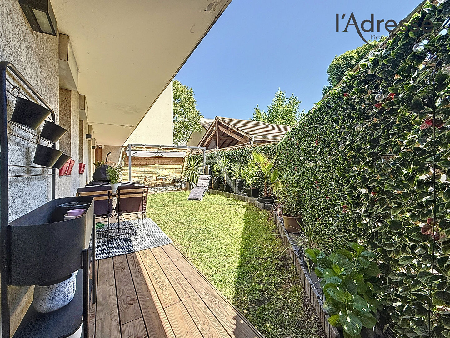 Toutes les pièces donnent un accès direct au jardin-terrasse de 47 m², exposé sud-est, avec pergola et éclairages intégrés, un havre de paix végétalisé en plein coeur de la ville sans nuisances sonores.