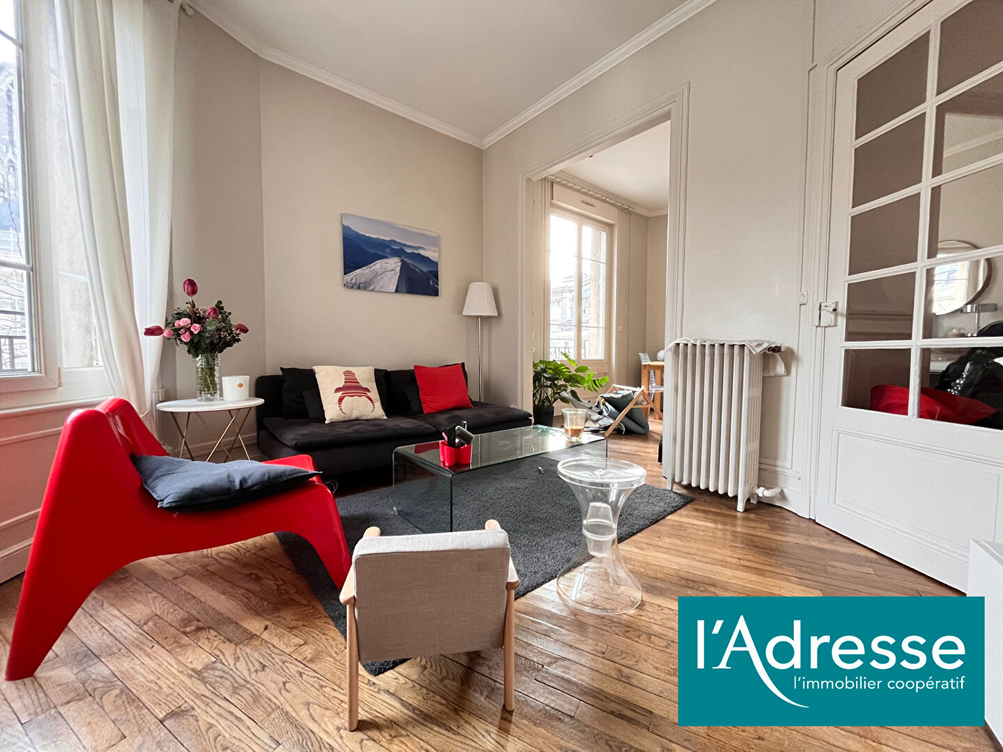 Ce spacieux appartement séduit immédiatement par son élégance et ses volumes.