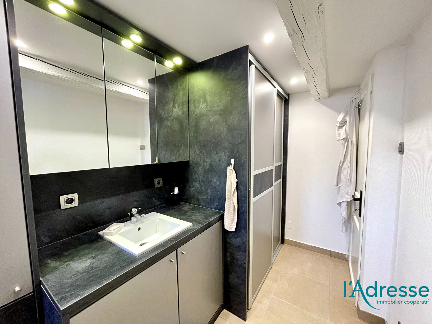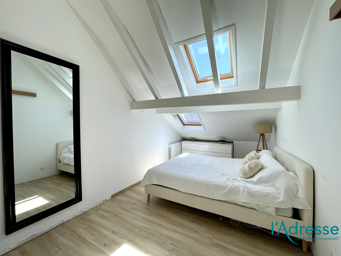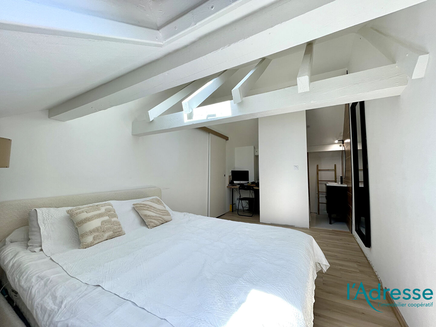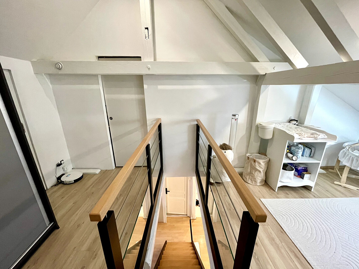 Situé dans une petite copropriété calme et bien entretenue, cet appartement lumineux en duplex séduit dès l'entrée par son ambiance chaleureuse, ses poutres apparentes et ses volumes bien pensés.