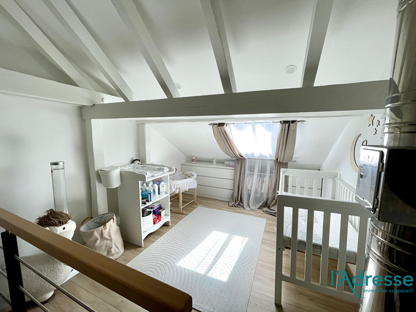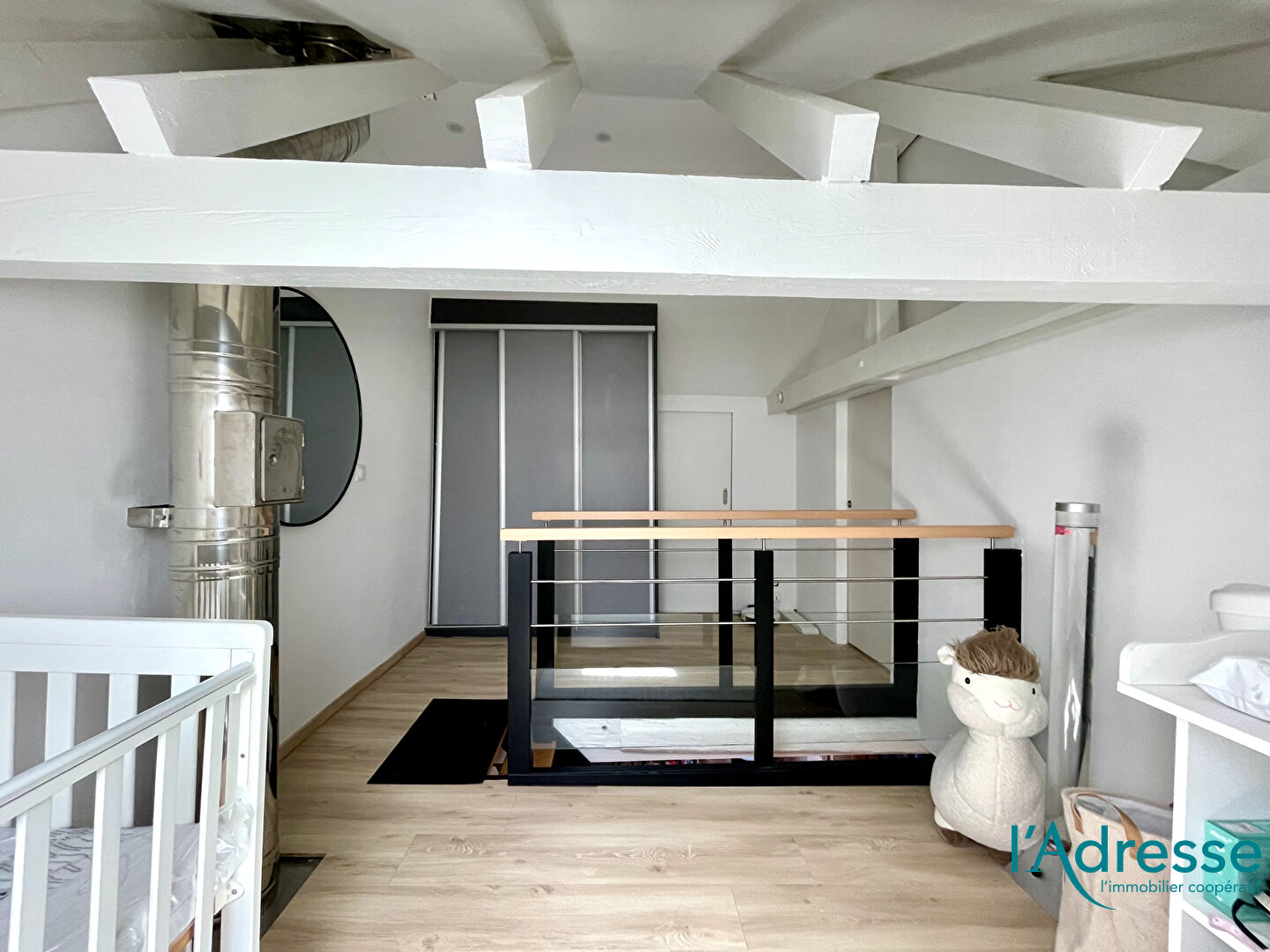 - Une mezzanine, pouvant faire office de bureau, de coin lecture ou de chambre d'enfant.
