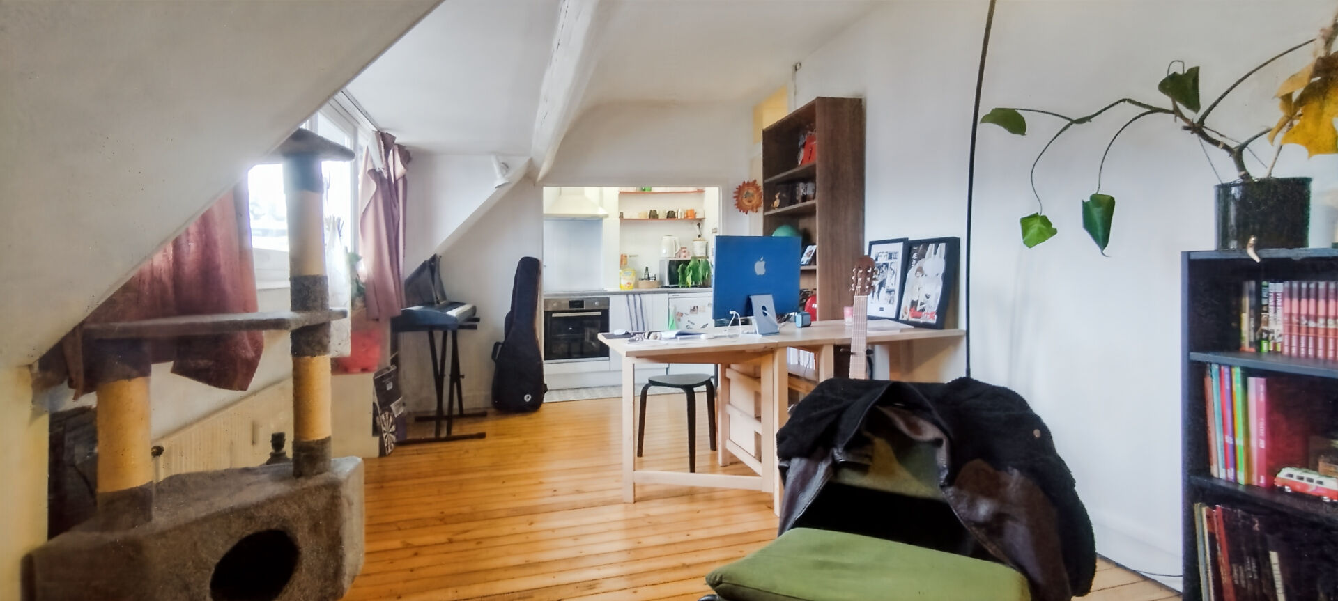 Vue imprenable sur les toits de Rouen pour cet appartement de type 2 niché au dernier étage d'un bel immeuble début 20 -ème.