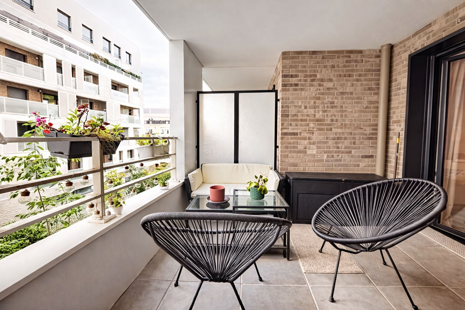 La copropriété récente est sécurisée, avec ascenseur, local vélos et espaces verts. À deux pas des commerces, restaurants (Les Bistrots pas parisiens, la Halle gourmande...), écoles, parcs, piscine et des transports (bus, accès rapide A86, future ligne 15 du Grand Paris Express).