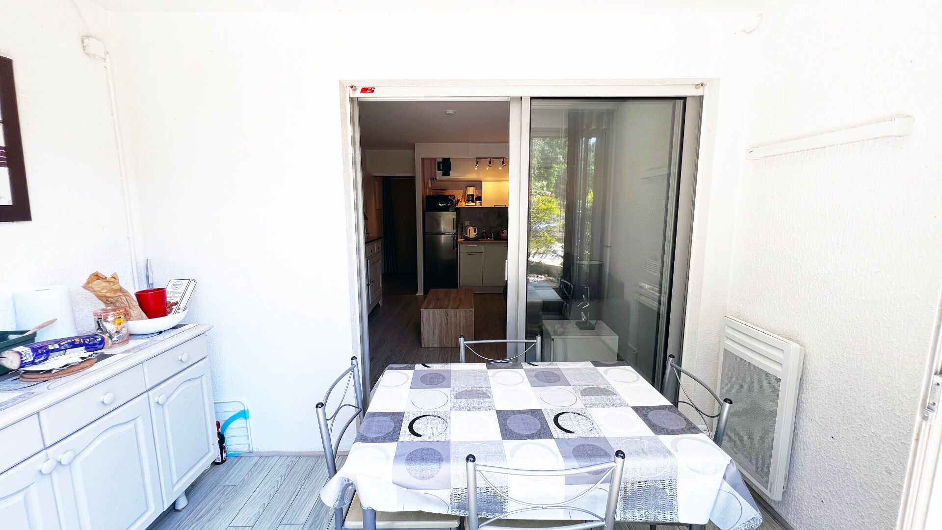 Appartement une pièce, proche plage et commerces, entièrement rénové, avec grand garage, dans une résidence sécurisée, avec gardien à l'année, court de tennis, terrain de pétanque.