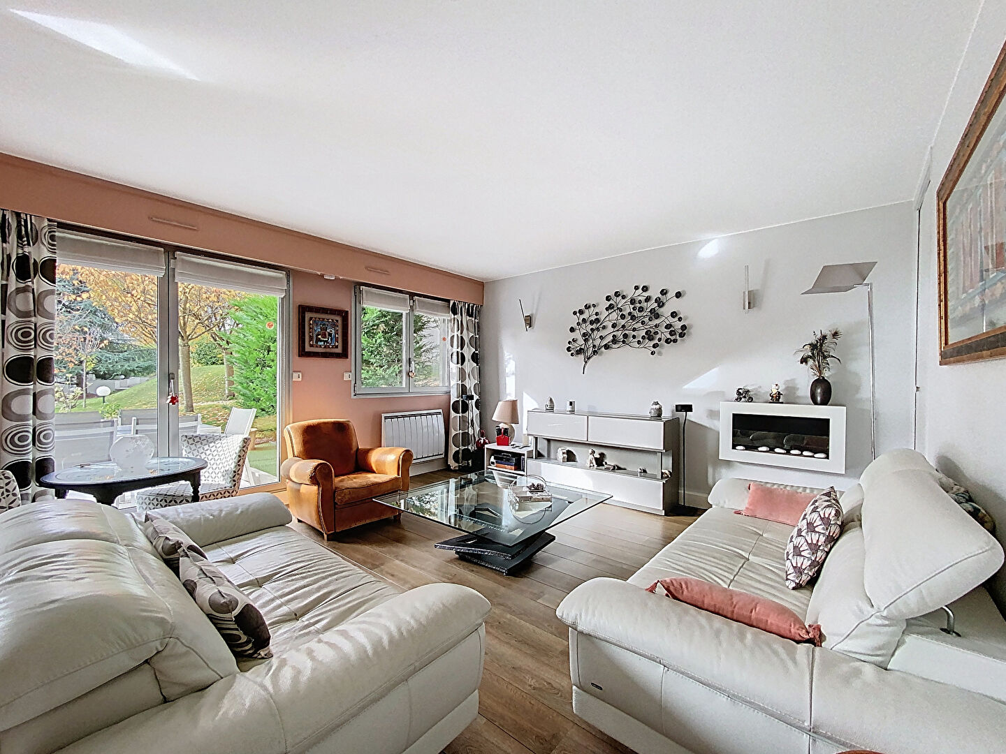 Situé en rez-de-jardin d'une résidence de standing, sécurisée et joliment entretenue avec gardien, cet appartement séduit par ses beaux volumes et sa vue dégagée sur le parc arboré de la copropriété.