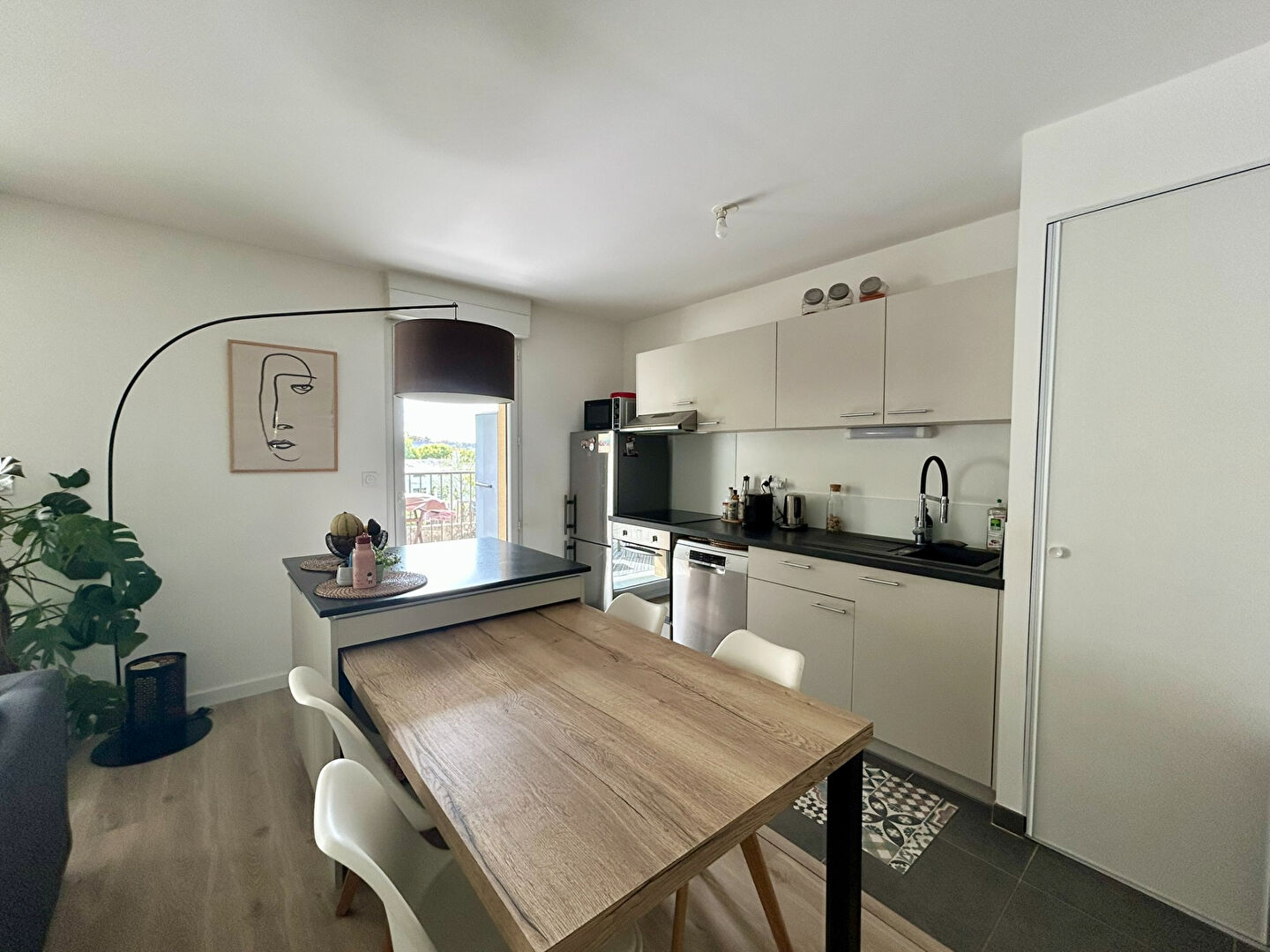 L'appartement s'ouvre sur une entrée avec placards qui mène à une belle pièce de vie lumineuse avec cuisine aménagée et équipée ouverte. L'espace se prolonge sur un vrai balcon de 16 m² exposé Est, idéal pour profiter de l'extérieur. La partie nuit comprend deux chambres confortables, une salle de bains moderne, un WC séparé ainsi qu'un dressing qui vient compléter ce bien rare pour un T3.
