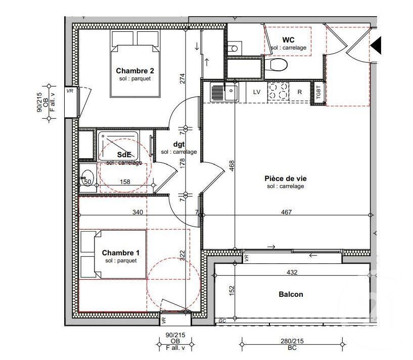 317 000 €Appartement3 pièces , 2 chambres