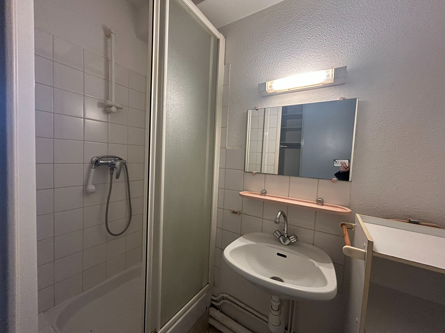 Il se compose d'une entrée avec de grands placards, d'une salle d'eau avec WC et d'une pièce principale avec kitchenette. Une place de garage est proposée en supplément, un atout rare en centre-ville.