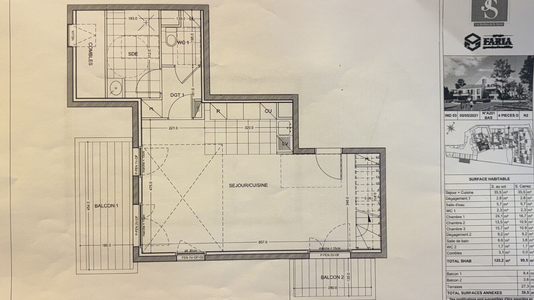 Très bel appartement duplex FRAIS de NOTAIRE REDUITS offrant salon séjour cuisine, salle d'eau wc, 2 balcons et 1 terrasse. A l'étage : 3 chambres, dégagement, salle de bains et wc.
