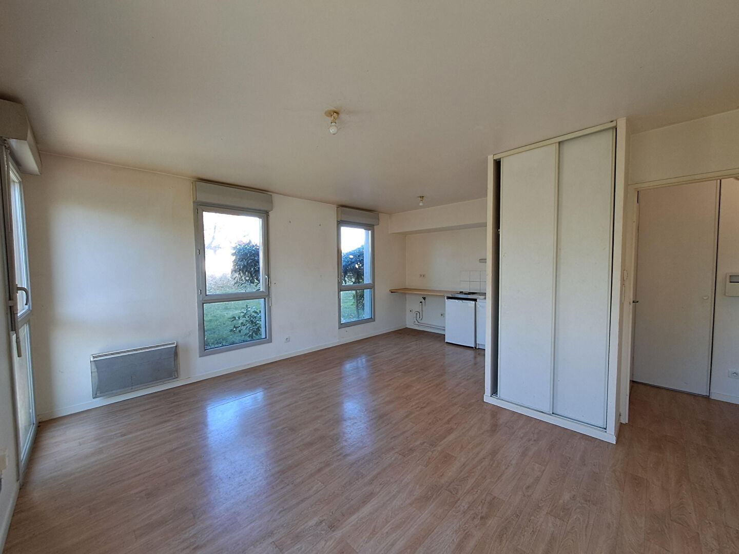 Chauffage électrique individuel, fenêtres PVC double vitrage, volets roulants, eau froide collective avec compteur.