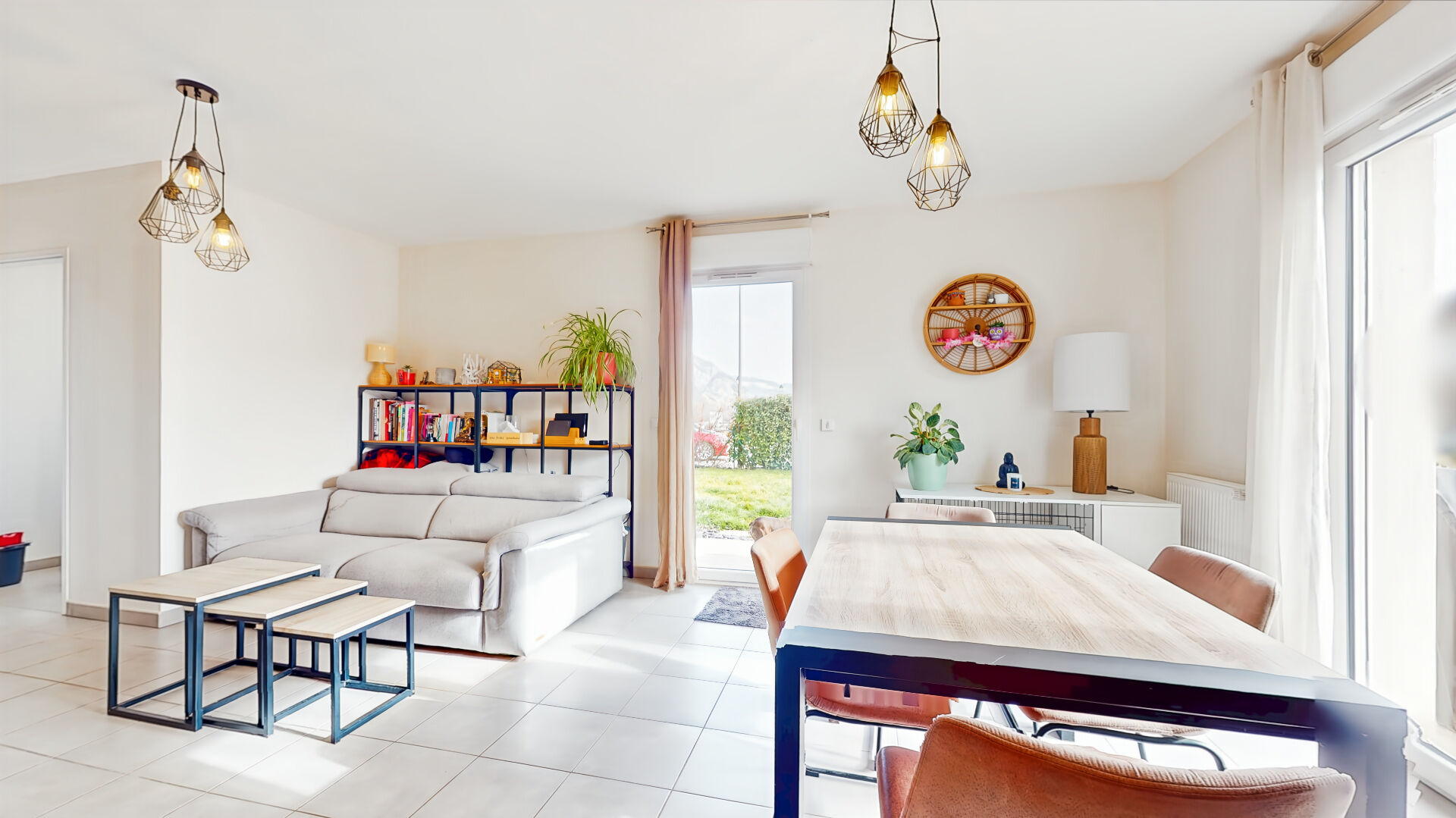 La pièce de vie, lumineuse et agréable, constitue le coeur du logement. Elle s'ouvre directement sur un bel extérieur en rez de jardin d'environ 120m², parfait pour profiter des beaux jours ou partager des repas en terrasse. Un véritable prolongement de l'intérieur, facile à vivre et à entretenir.