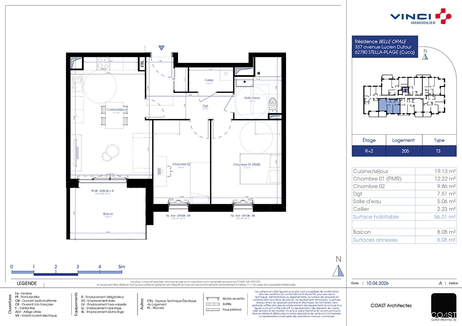 Appartement Stella Plage 3 pièces 56m² + balcon sud 8m²