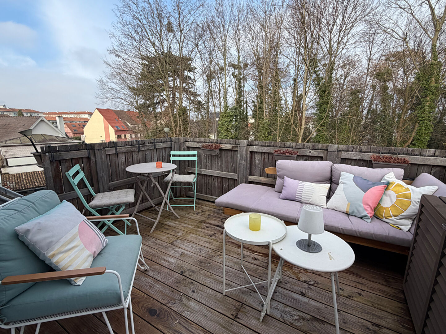 À proximité immédiate des transports en commun (tram B et E, lignes de bus 70, C6 et N1), dans le quartier recherché de la Robertsau et au calme d'une impasse, appartement situé au dernier étage d'une maison composée de trois logements, entièrement rénové en 2021.