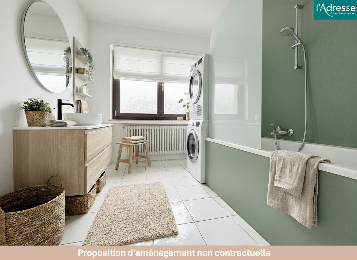 - salle de bains de 7m² avec baignoire-douche, meuble vasque, emplacement pour le lave-linge et sèche-linge, ballon d'eau chaude électrique.